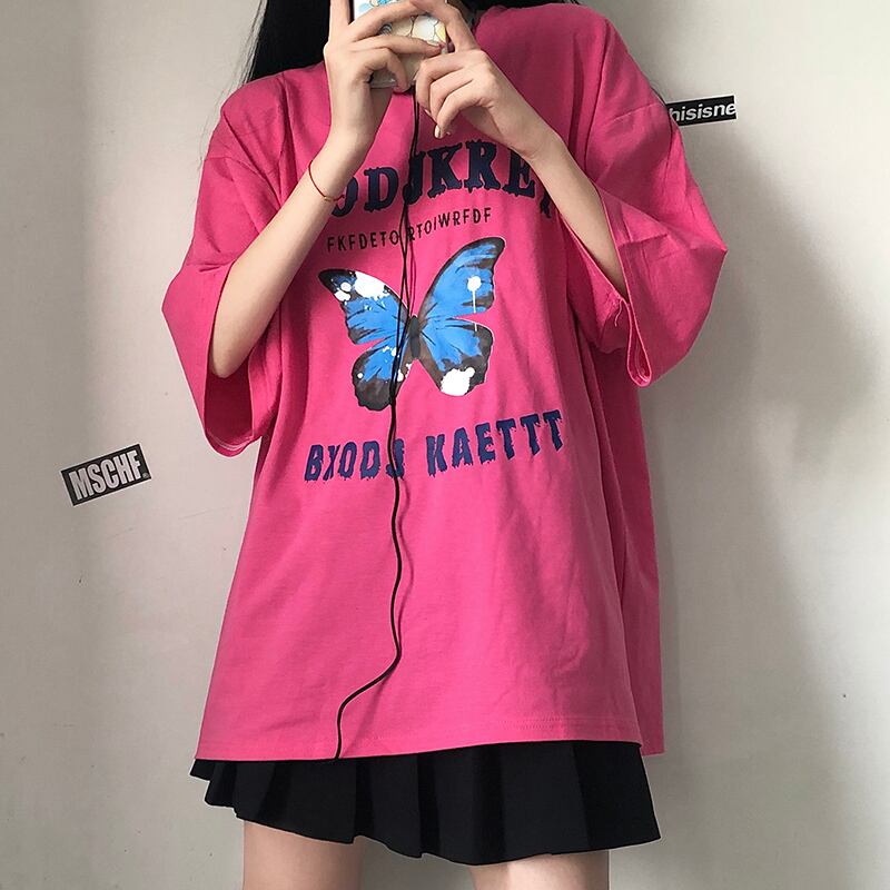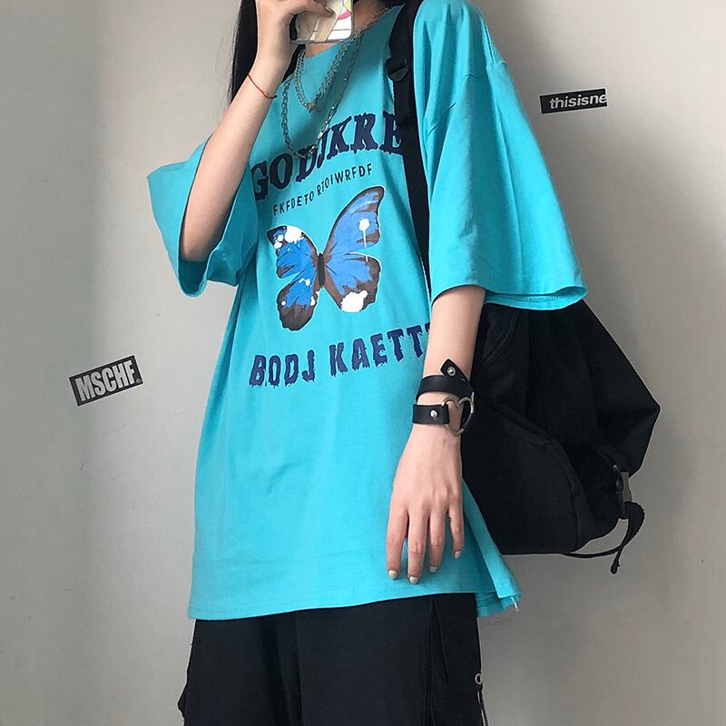 夏服韓国ファッションNEWスタイルスタンダードButterflyデザイン プリント柄ルーズラウンドネックカジュアルTシャツ レトロ 原宿 夏物 Oネック Studios58838414596 | pLegLad Studios
