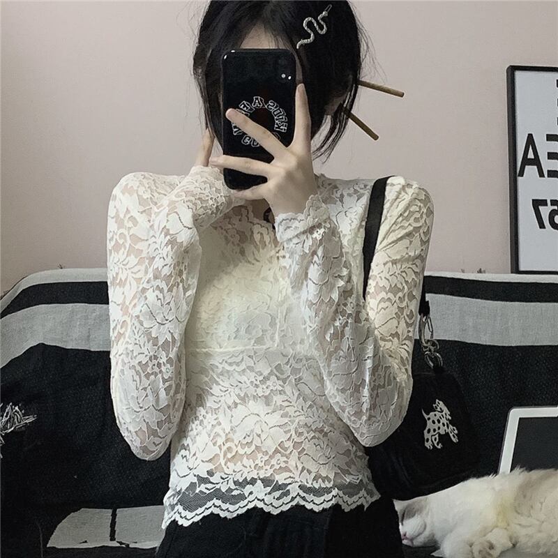 スプリング韓国ファッションNEWスタイルスタンダードVネックメッシュトップス スリムショートレースゆったりシャツ レトロ 春物 Studios27802919087 | pLegLad Studios