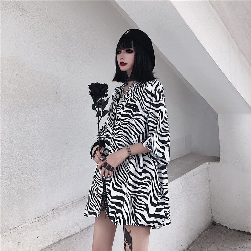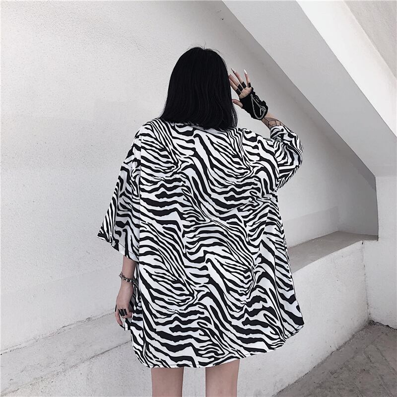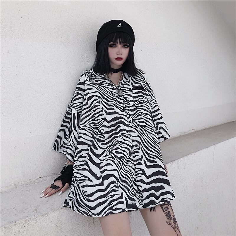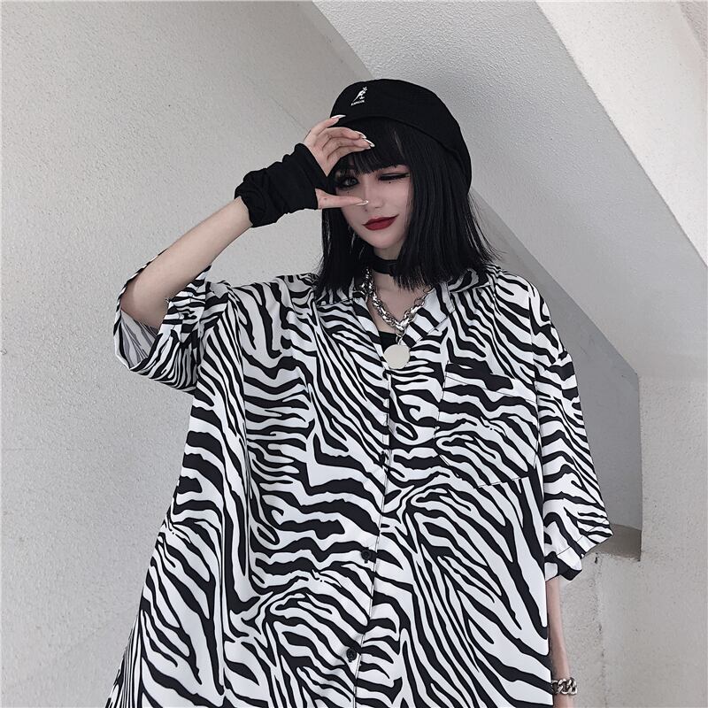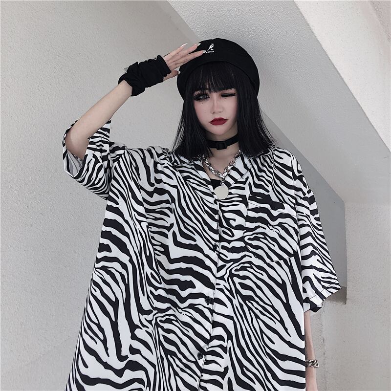 夏服韓国ファッションNEWスタンダードブラックホワイトカラーパターンカジュアルトップス ルーズシャツ レディース レトロ 夏物 スタイル Studios62792642268 | pLegLad Studios