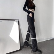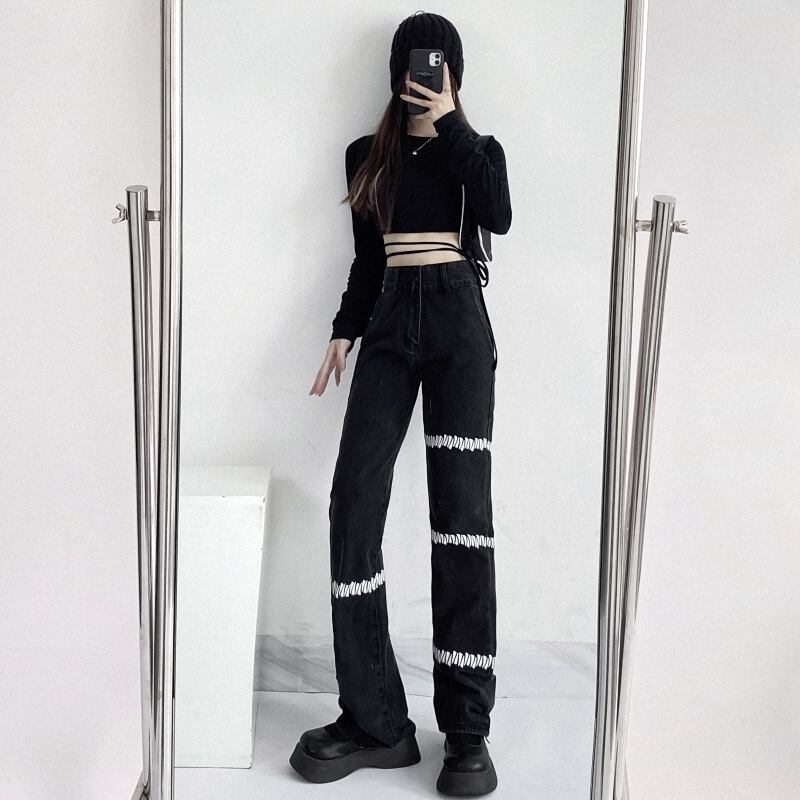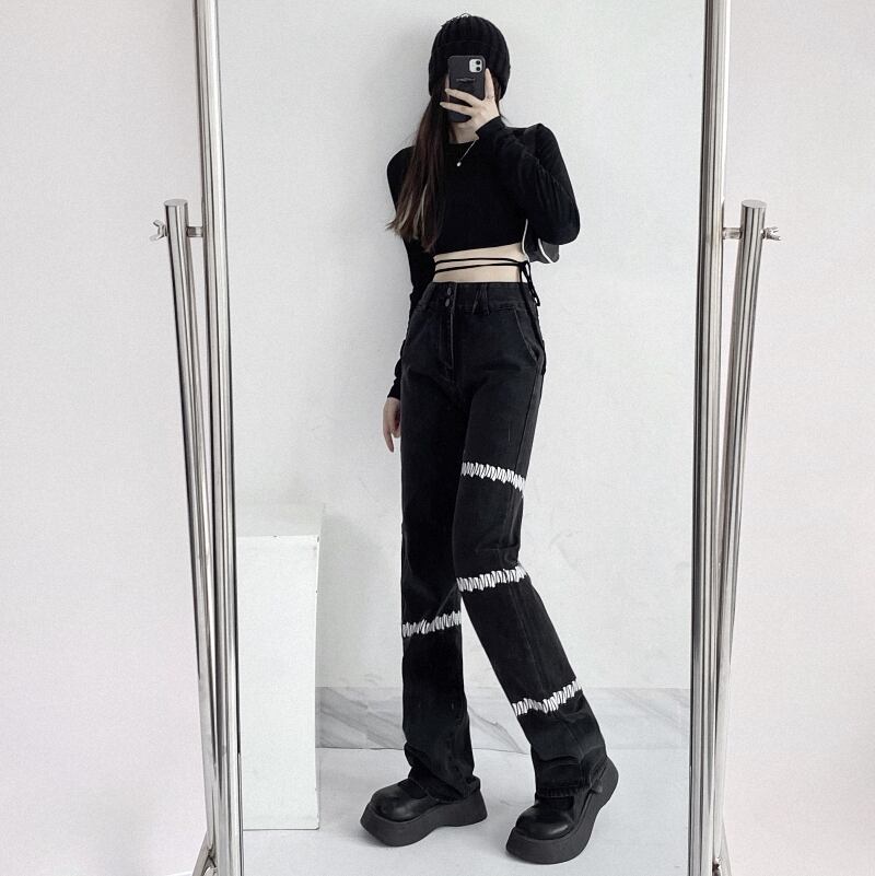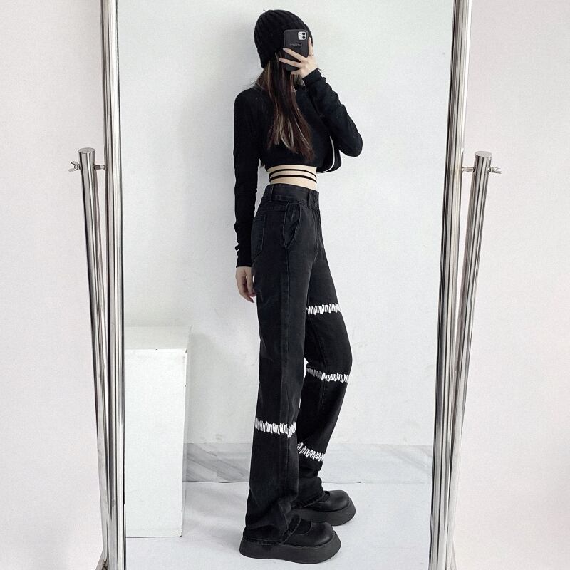 韓国ファッションNEWスタイルスタンダードハイウェストウェストカジュアルパンツ ルーズ薄手ジーンズ レディース レトロ ウエスト Studios68254806463 | pLegLad Studios
