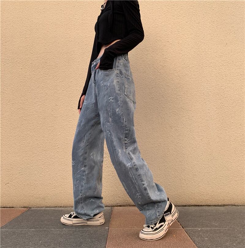 ジーンズ レディース韓国ファッションNEWスタンダードルーズ薄手ハイウェストウェストワイドレッグカジュアル レトロ ストリート ワイドパンツ スタイル ウエスト Studios94329793333 | pLegLad Studios