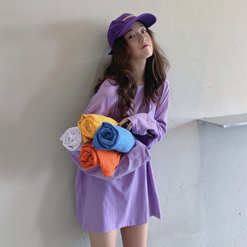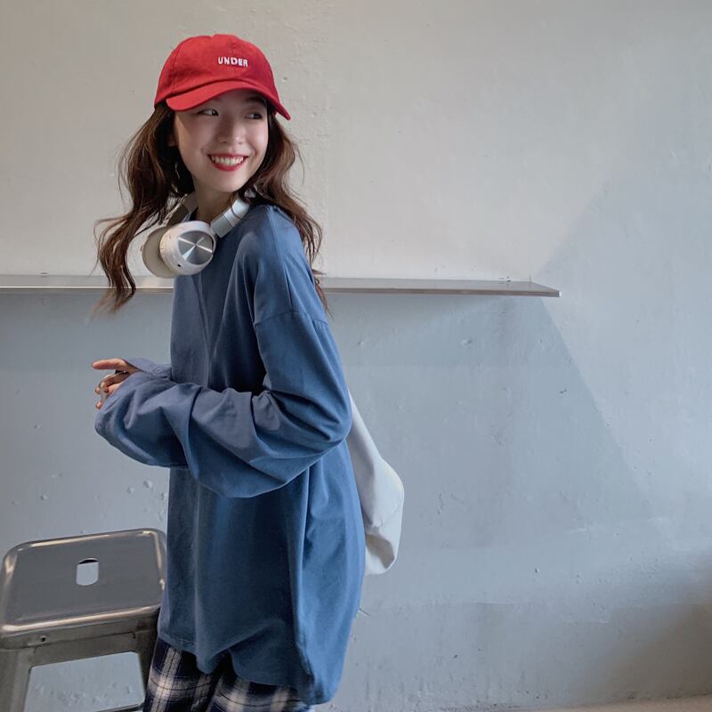 スプリング韓国ファッションNEWスタイルスタンダードゆったりシャツ トップス ラウンドネックルーズTシャツ ロング レトロ 春物 Oネック 長袖 Studios39381558301 | pLegLad Studios