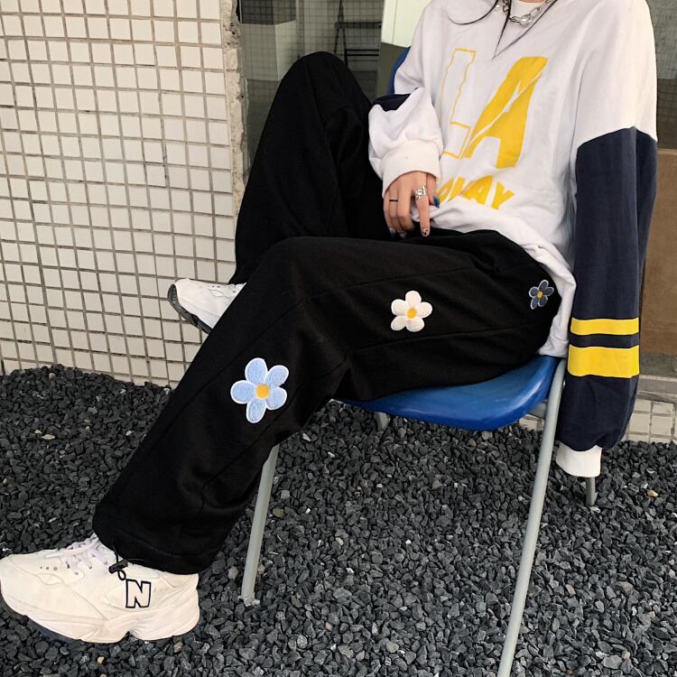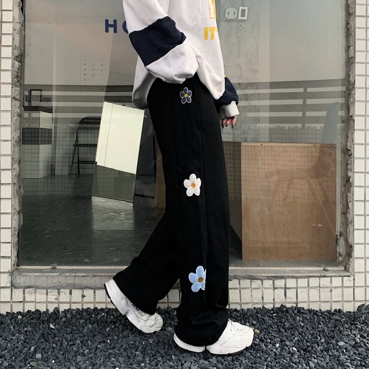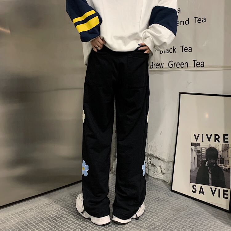 韓国ファッションNEWFlowerデザイン プリント柄カジュアルパンツ ルーズブラックギャザー 大人ガーリー スウィート キュート フラワーデザイン スタイル Studios29742383892 | pLegLad Studios