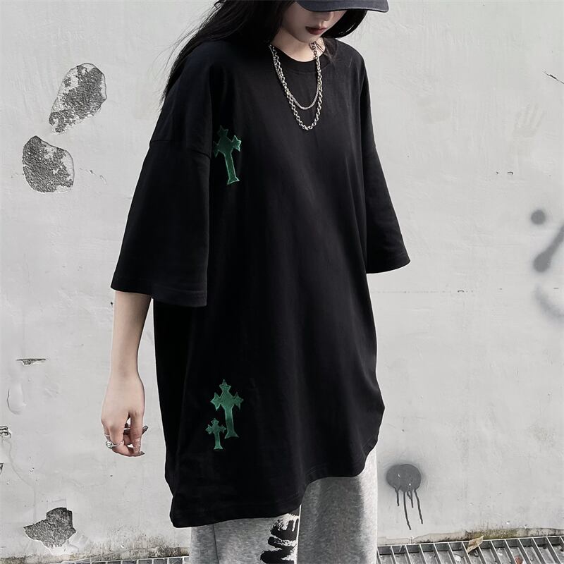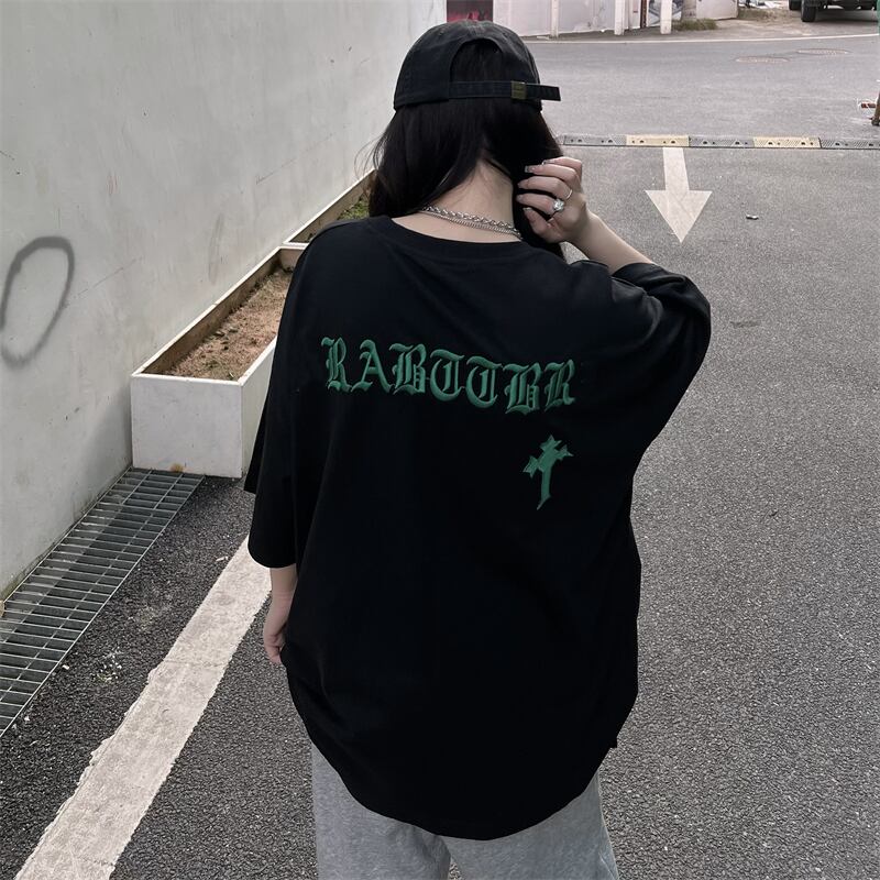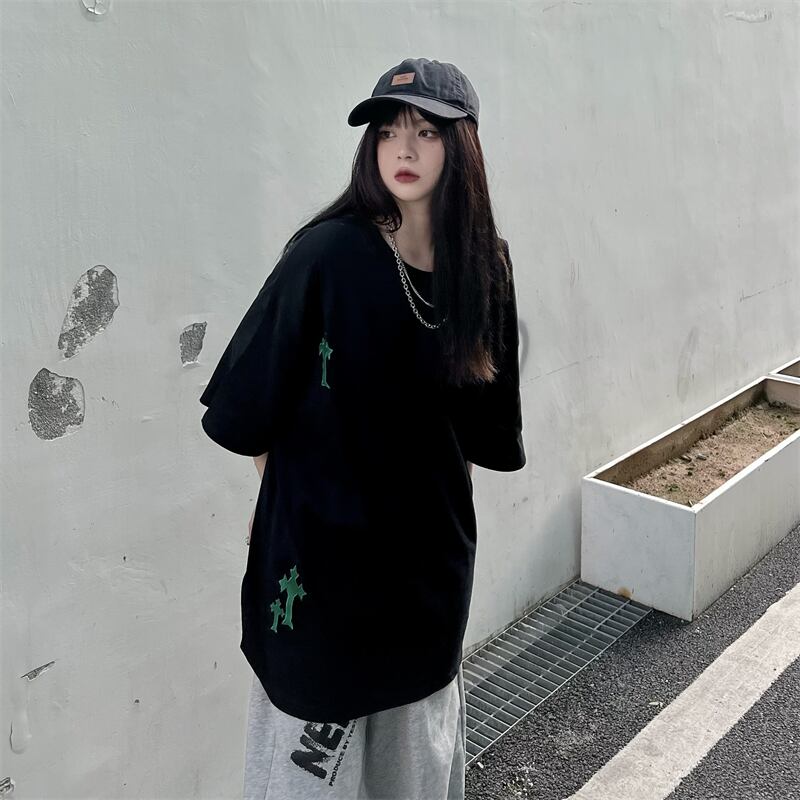 夏服韓国ファッションNEWスタイル刺繍ルーズラウンドネックカジュアルTシャツメンズレディース ストリート 原宿 夏物 Oネック Studios12930503864 | pLegLad Studios