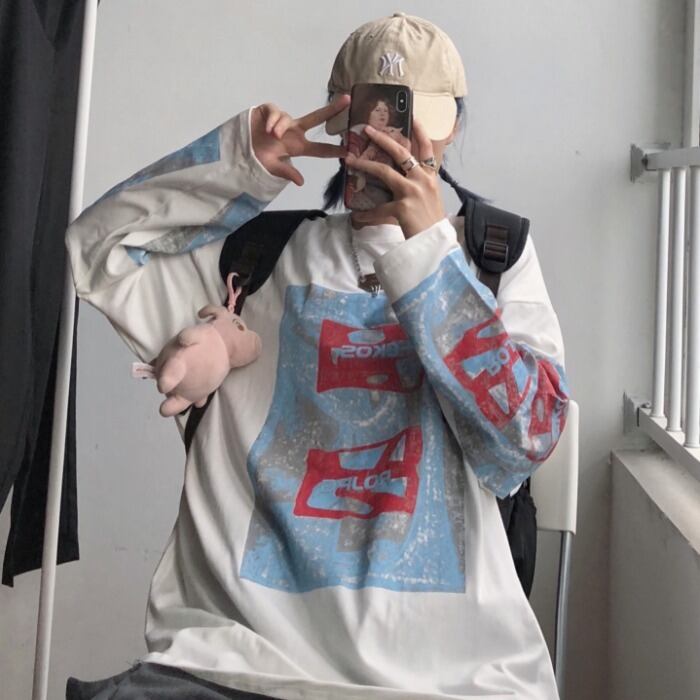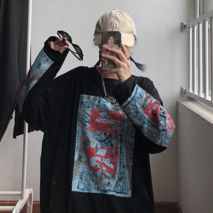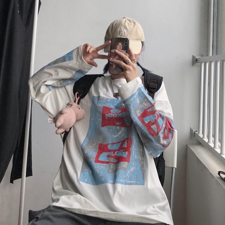 秋物韓国ファッションNEWスタイルスタンダードプリントゆったりシャツ トップス ルーズカジュアルTシャツレディース ロング レトロ 原宿 オータム 長袖 Studios74409302564 | pLegLad Studios