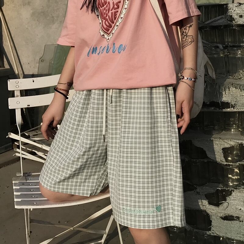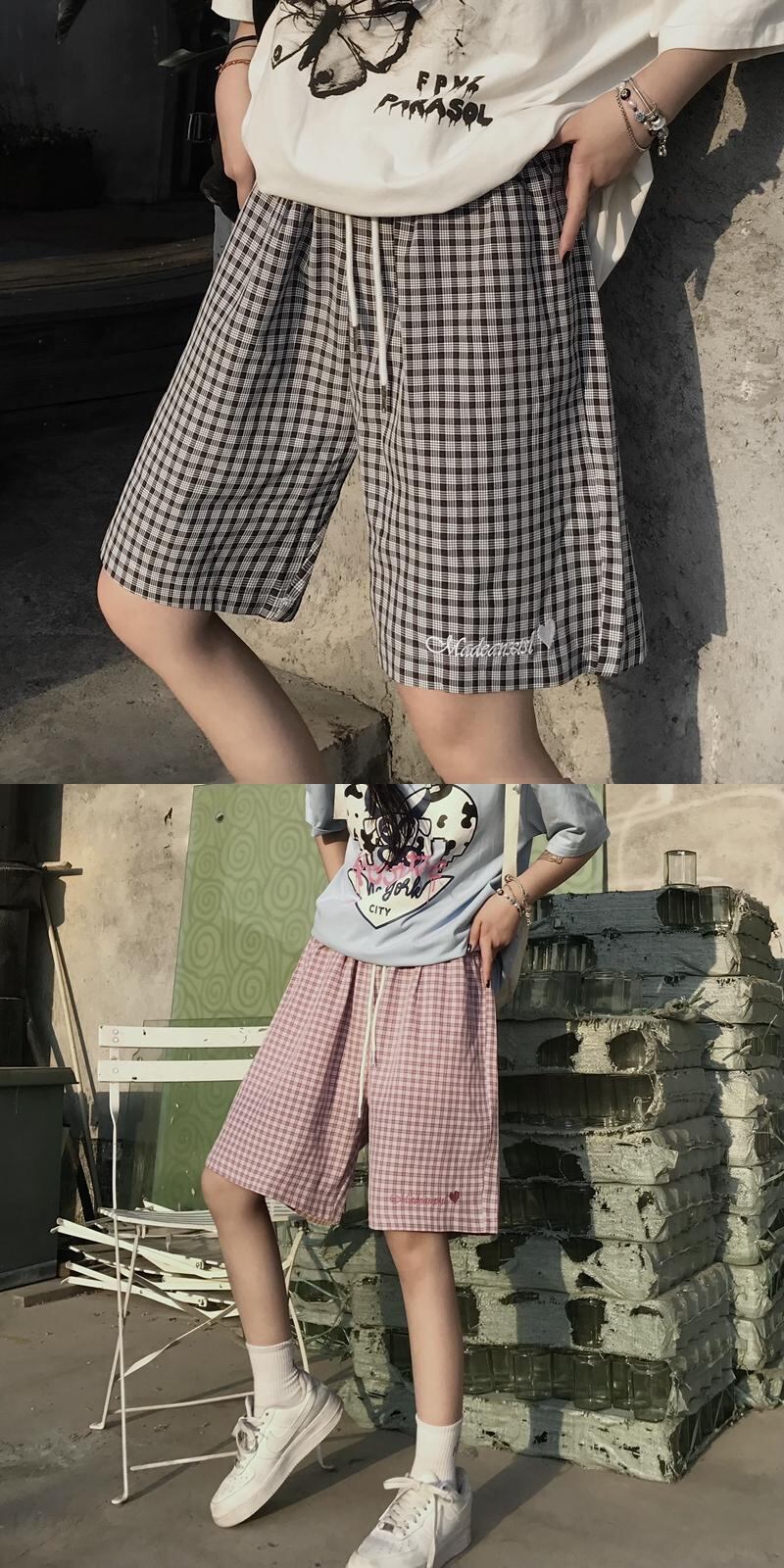 格子柄カジュアルパンツ レディース夏服韓国ファッションNEWスタイルスタンダードルーズショーツ レトロ ストリート 原宿 夏物 Studios66247503832 | pLegLad Studios