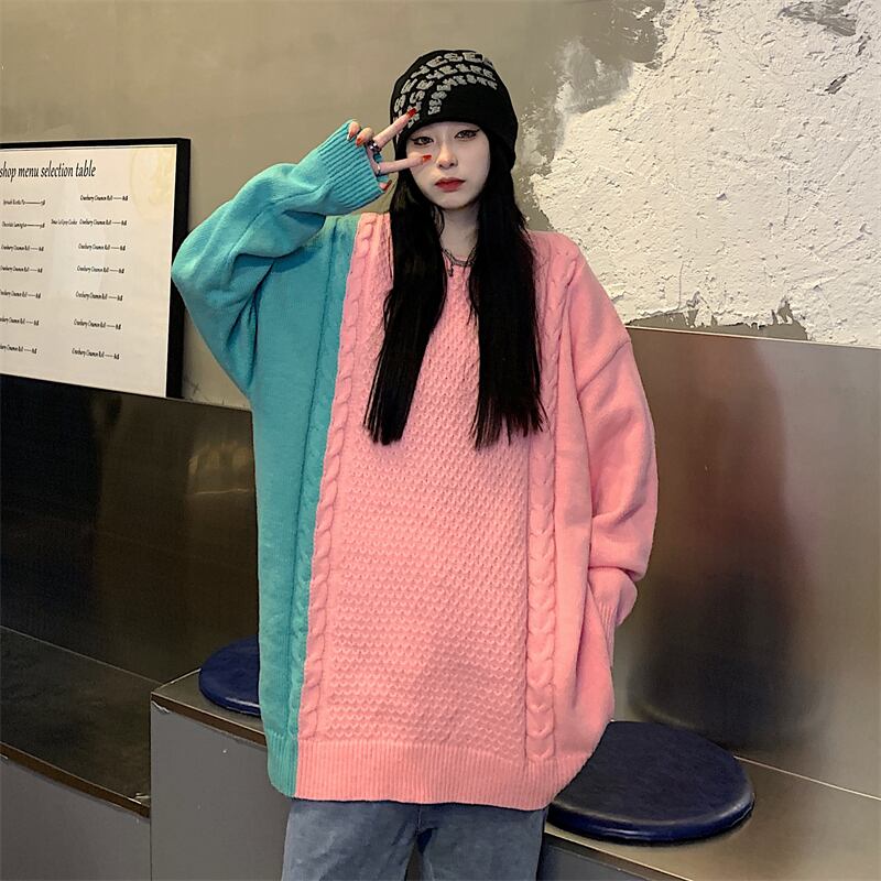 秋物ウィンター韓国ファッションNEWスタンダードカラールーズラウンドネックセーター レディース レトロ オータム 冬物 Oネック ステッチ スタイル Studios64708554863 | pLegLad Studios