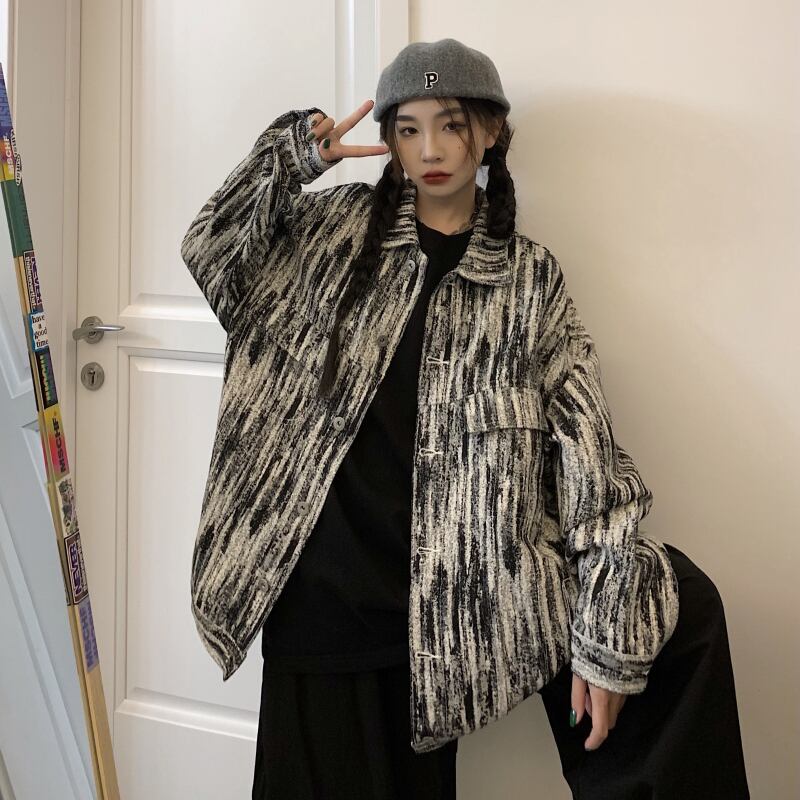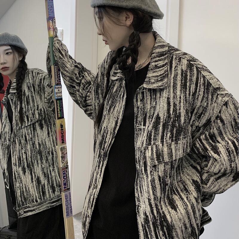 秋物ウィンター韓国ファッションNEWスタイルスタンダードストライプカジュアルルーズジャケット ロング レトロ オータム 冬物 長袖 Studios16444038519 | pLegLad Studios