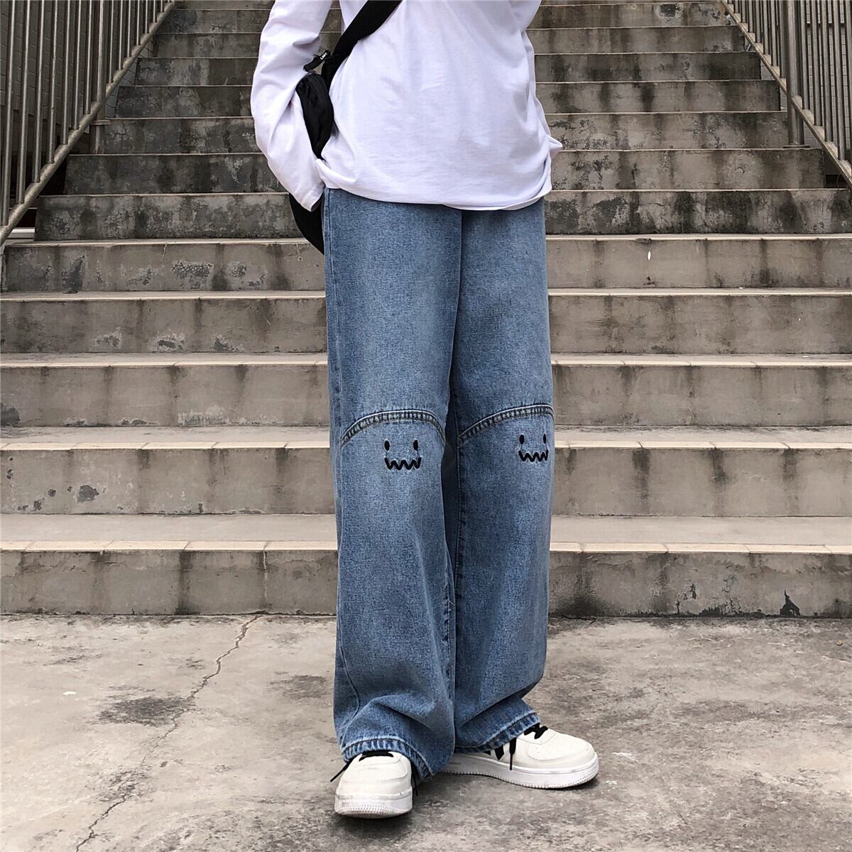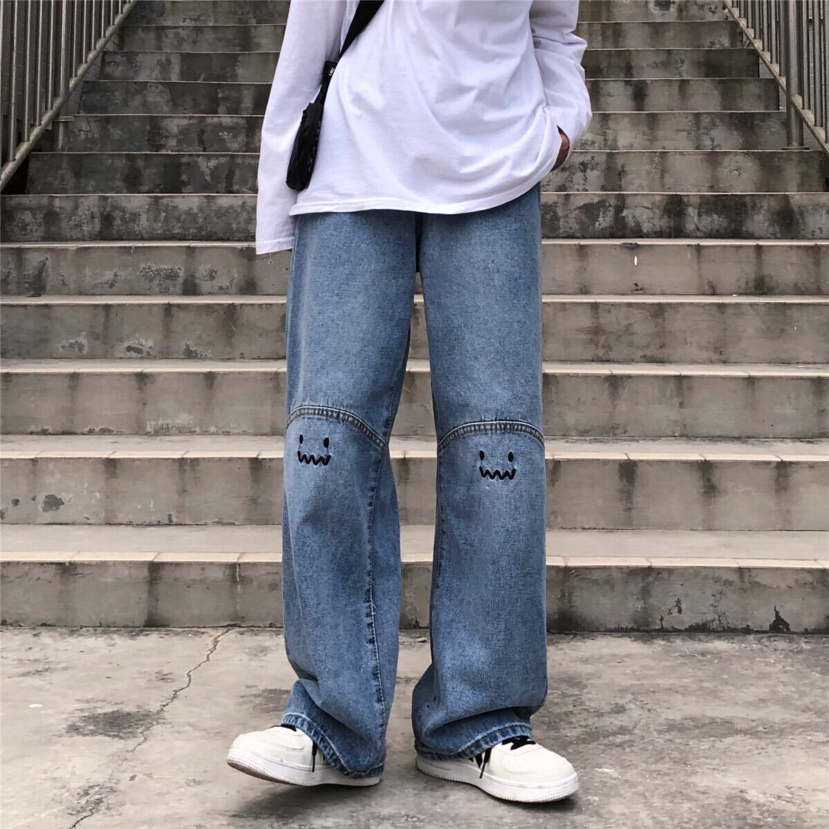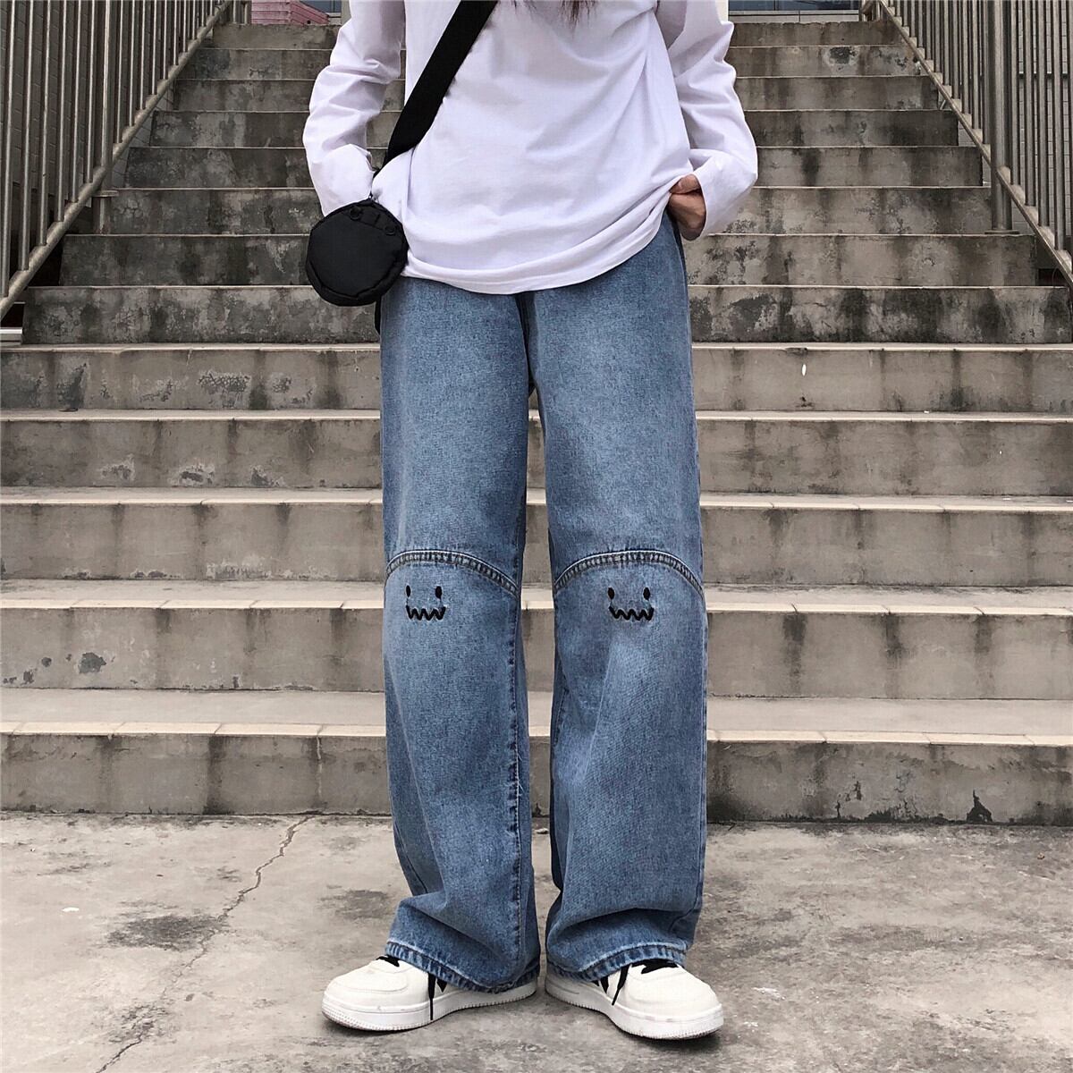 ジーンズ レディース韓国ファッションNEWスタンダードルーズ薄手ハイウェストウェストワイドレッグ レッド レトロ ストリート 刺繍 ワイドパンツ スタイル ウエスト Studios16956704549 | pLegLad Studios