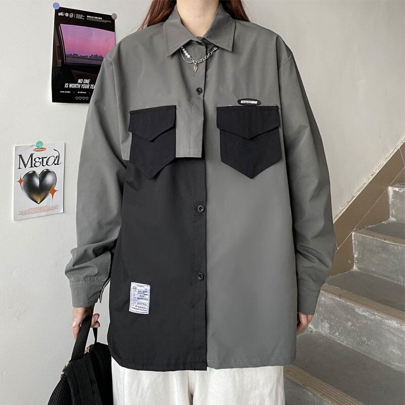 スプリング韓国ファッションNEWスタイルスタンダードカラールーズシャツ ロング レトロ ストリート 原宿 春物 ステッチ 長袖 Studios42924512158 | pLegLad Studios