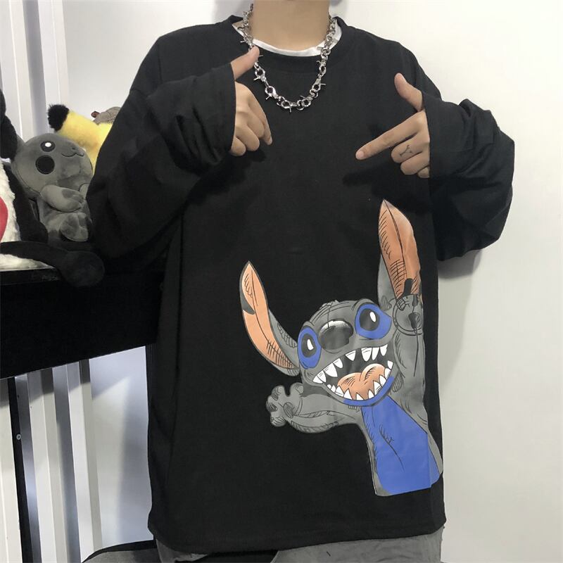 スプリング韓国ファッションNEWスタイルスタンダードプリントルーズゆったりシャツ Tシャツメンズレディース ロング レトロ ストリート 原宿 春物 長袖 Studios18781042964 | pLegLad Studios