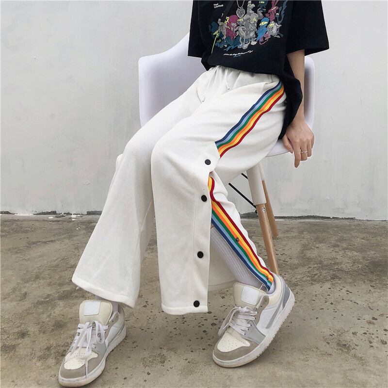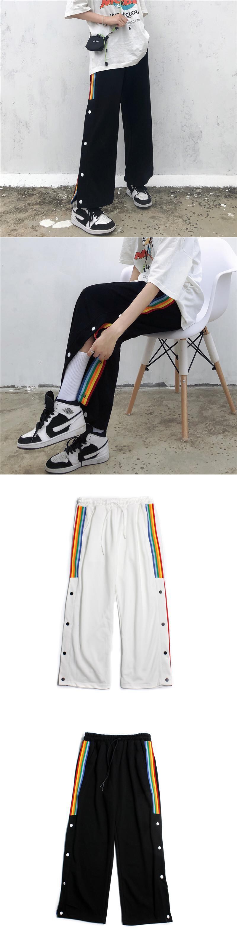 カジュアルパンツ 韓国ファッションNEWストライプブレストルーズハイウェストウェストブラックワイドレッグ ワイドパンツ スタイル ウエスト Studios78991189883 | pLegLad Studios