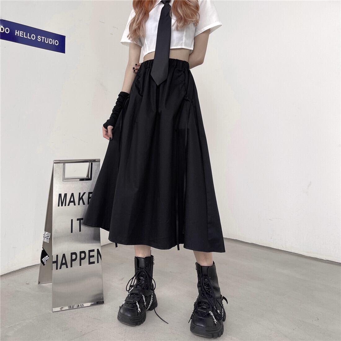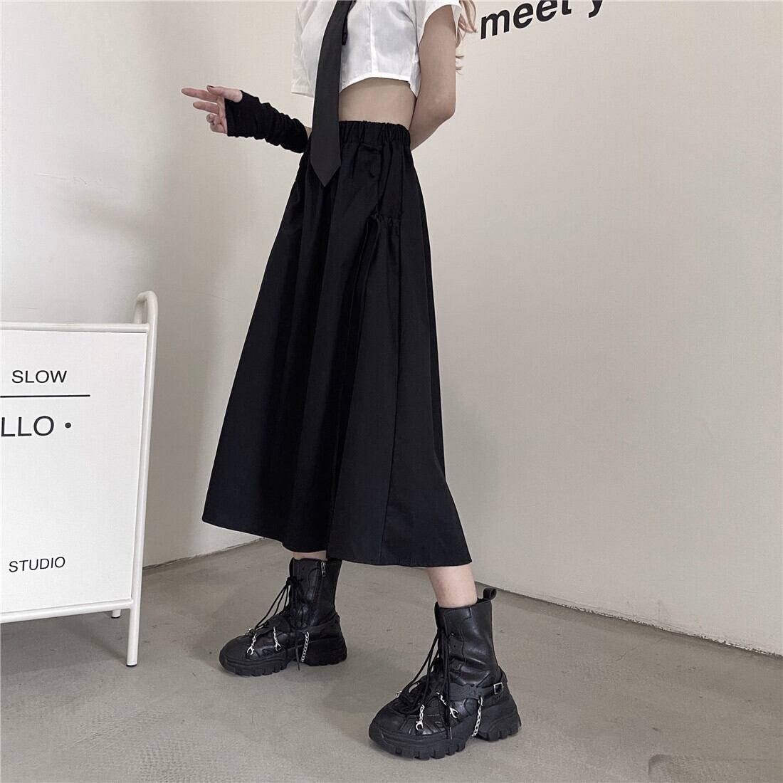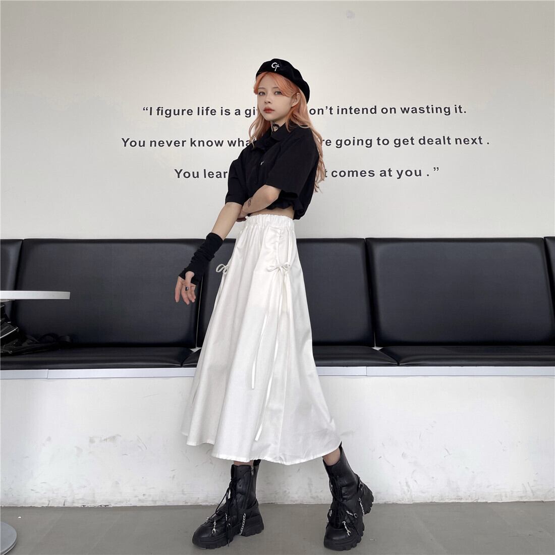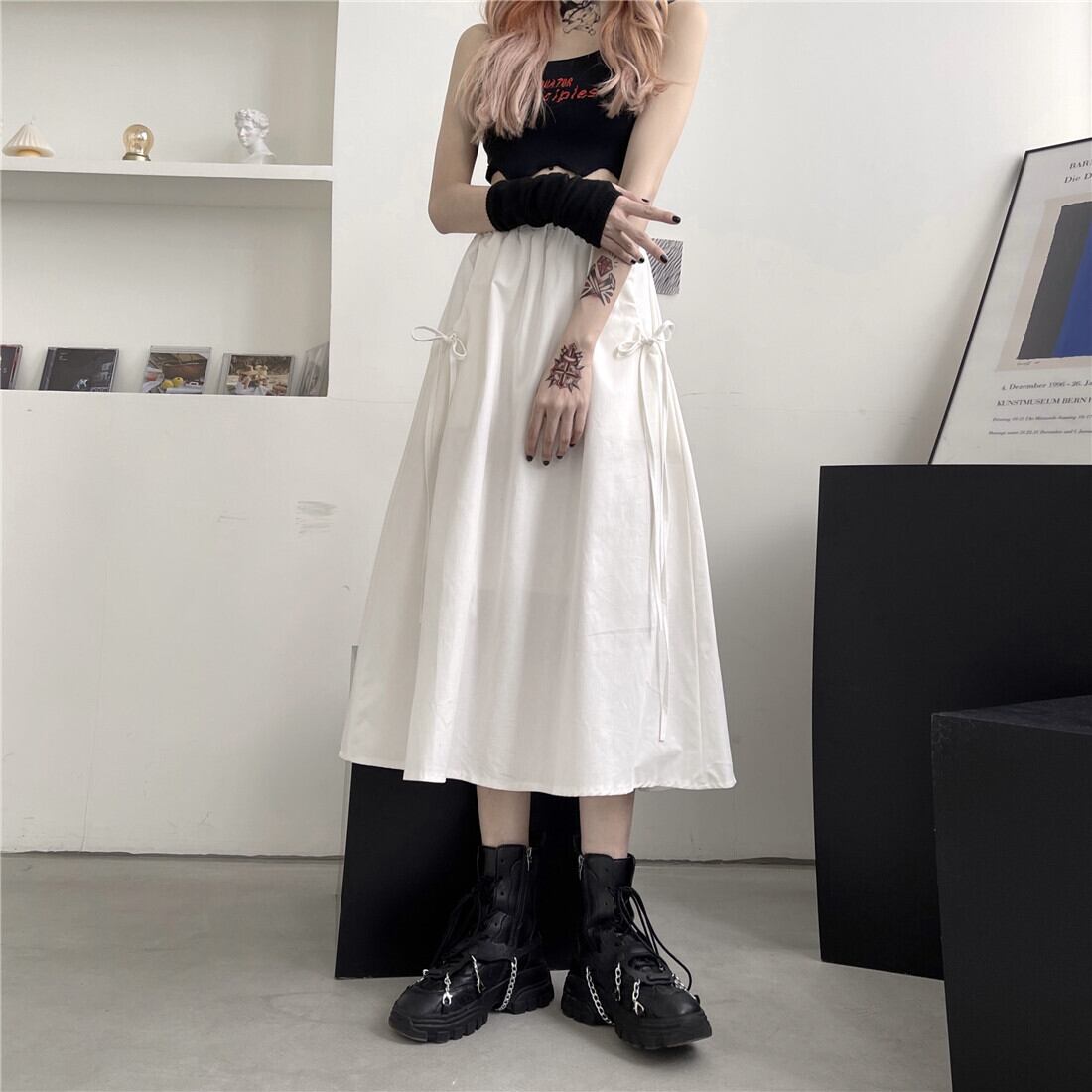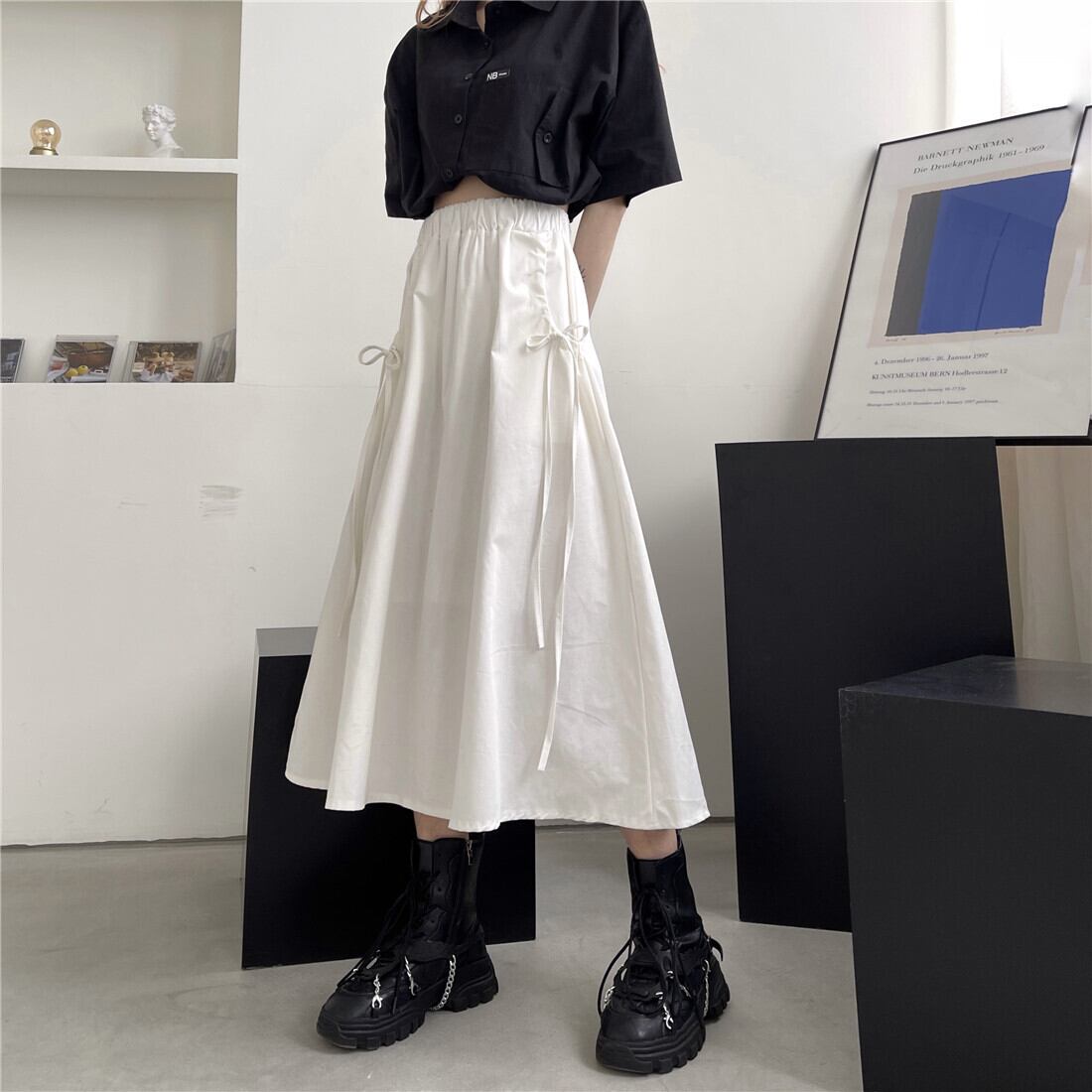 スカート 夏服韓国ファッションNEWスタイルスタンダードハイウェストウェストギャザーAラインルーズホワイト レトロ 夏物 ウエスト ミドル丈 Studios91281892169 | pLegLad Studios