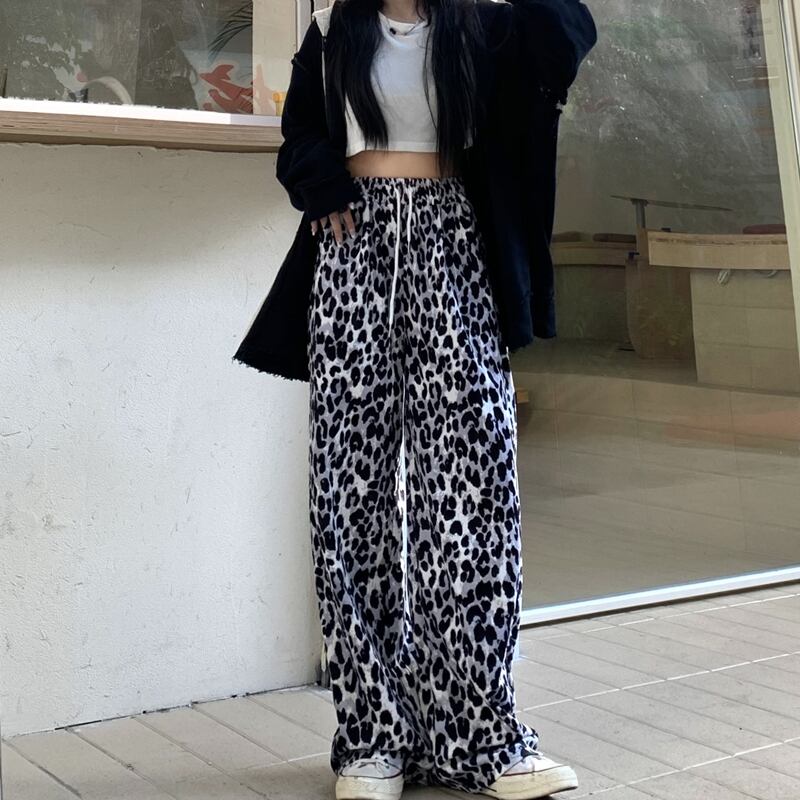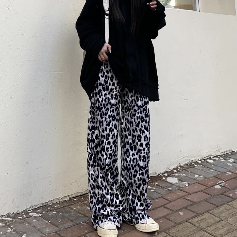 厚みカジュアルパンツ スプリング秋物韓国ファッションNEWレオパードプリント柄ハイウェストウェストルーズ薄手 ストリート 春物 オータム ワイドレッグ ワイドパンツ スタイル ウエスト Studios13623558726 | pLegLad Studios
