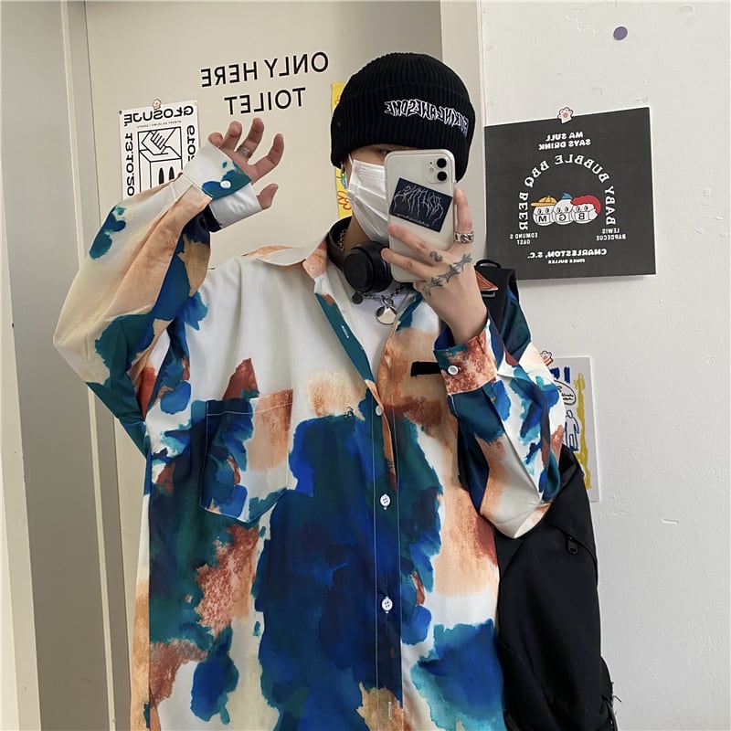 韓国ファッションNEWスタイルスタンダードプリント薄手ルーズカジュアルシャツ メンズレディース ロング レトロ ストリート 原宿 長袖 Studios82306187633 | pLegLad Studios