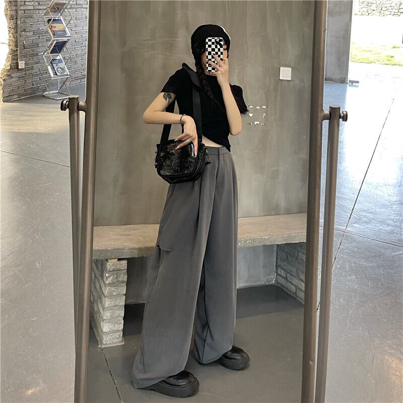 カジュアルパンツ 秋物韓国ファッションNEWハイウェストウェストルーズ薄手ワイドレッグ オータム ワイドパンツ スタイル ウエスト Studios38512863845 | pLegLad Studios