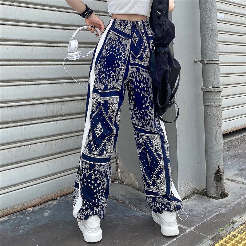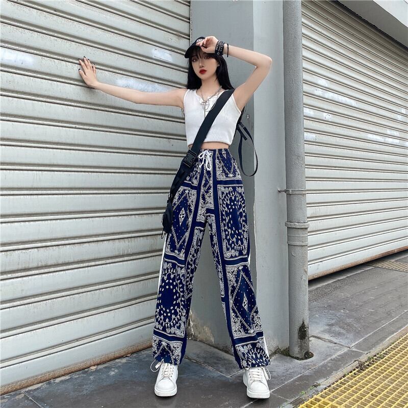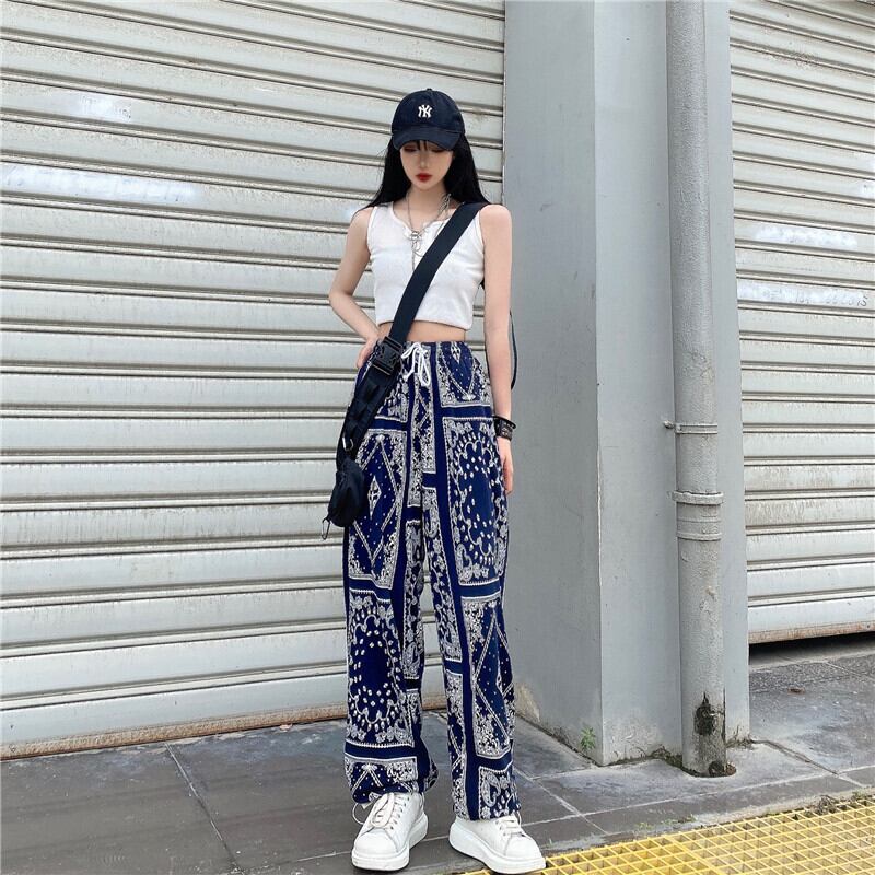 カジュアルパンツ レディース韓国ファッションNEWスタンダードFlowerデザイン ハイウェストウェストルーズワイドレッグ レトロ ストリート ワイドパンツ フラワーデザイン ステッチ ウエスト Studios19992870178 | pLegLad Studios