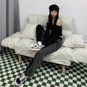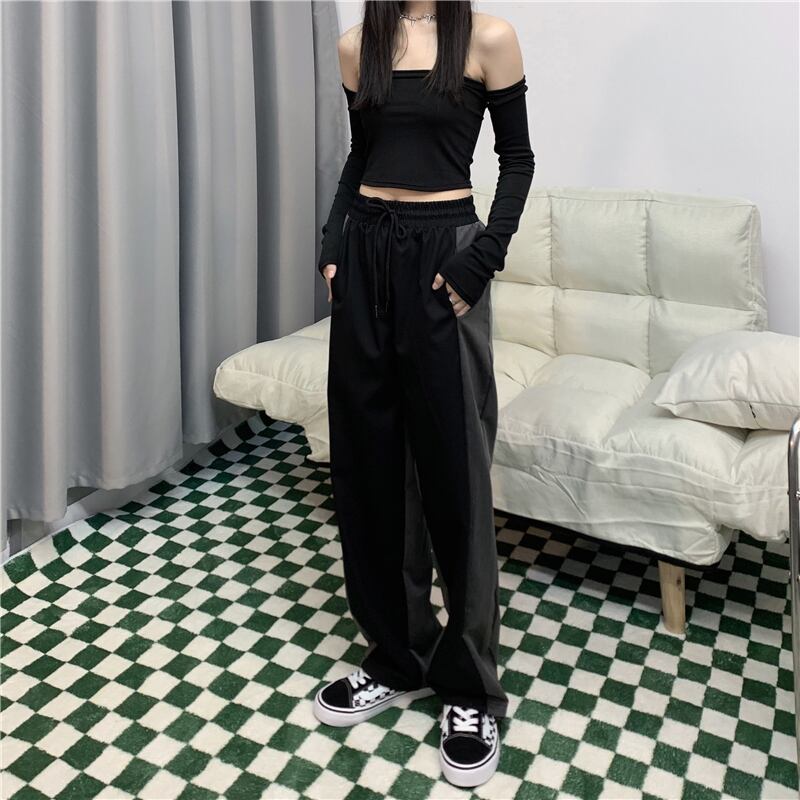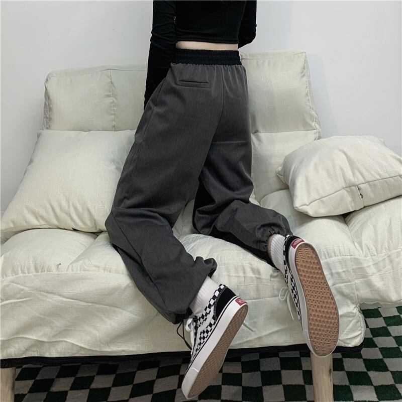 カジュアルパンツ レディース韓国ファッションNEWスタンダードハイウェストウェストワイドレッグルーズ薄手 レトロ ワイドパンツ ステッチ スタイル ウエスト Studios5144087822 | pLegLad Studios