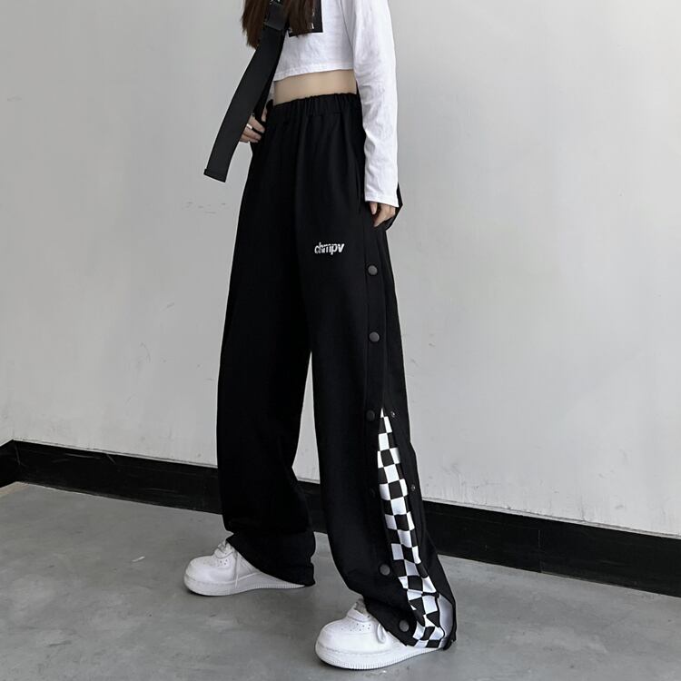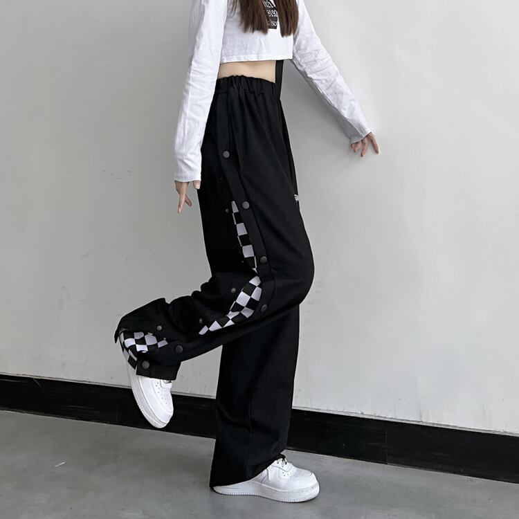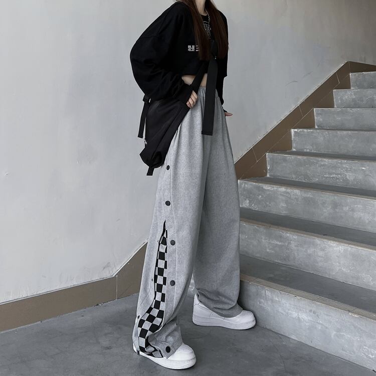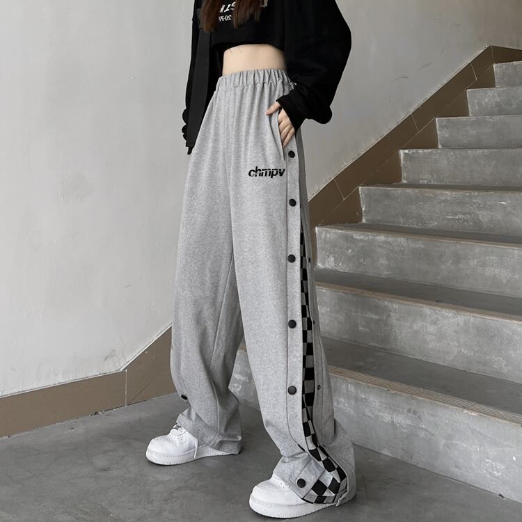 NEWボタンプリント柄ストレッチウェストルーズ薄手ワイドレッグカジュアルパンツ メンズレディース ストリート エラスティック 伸縮 ワイドパンツ ウエスト Studios60734852435 | pLegLad Studios