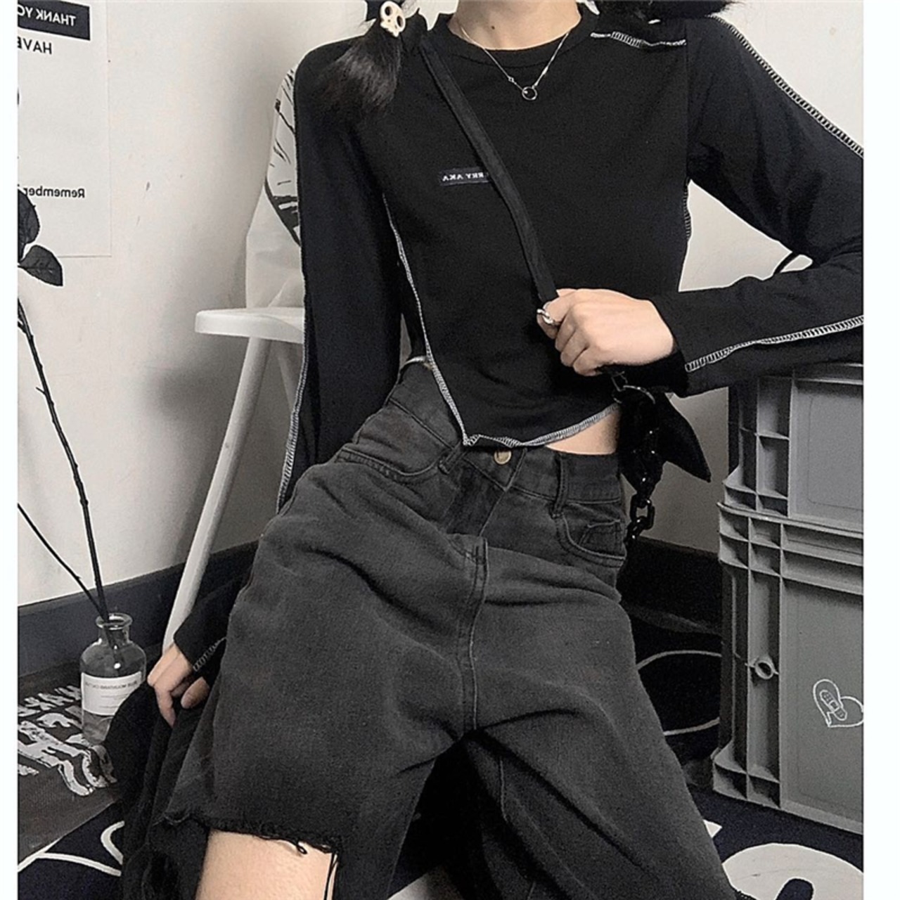 秋物韓国ファッションNEWスタンダードラインスリムゆったりショートTシャツトップス レディース ロング レトロ ストリート オータム スタイル 長袖 Studios64942021539 | pLegLad Studios