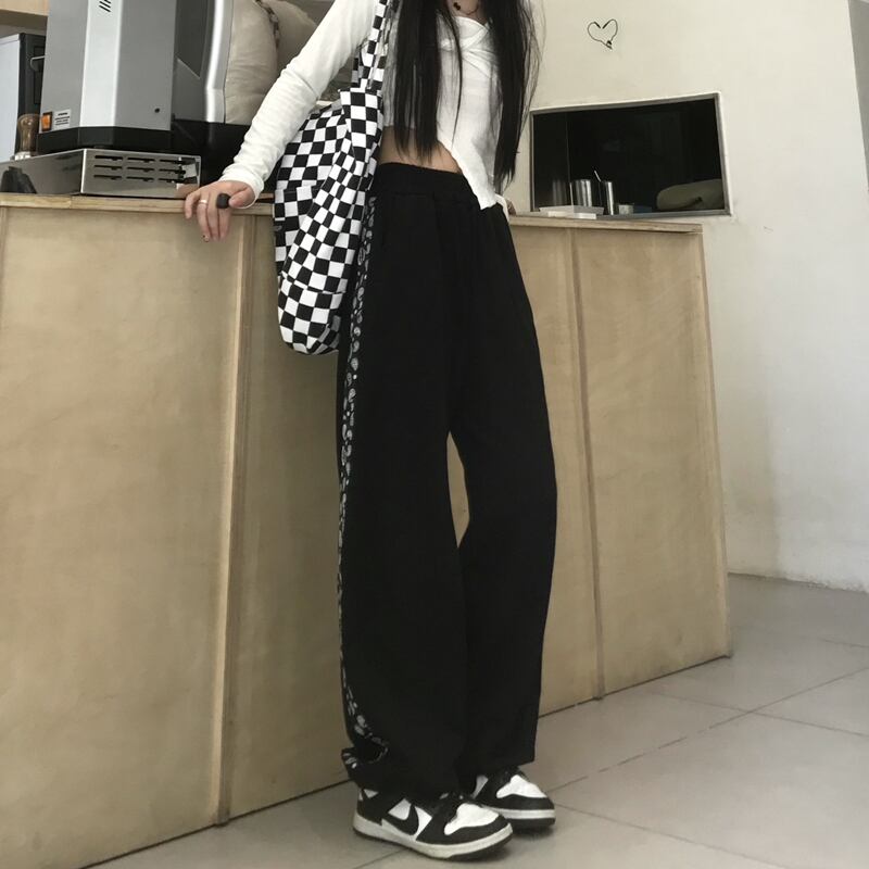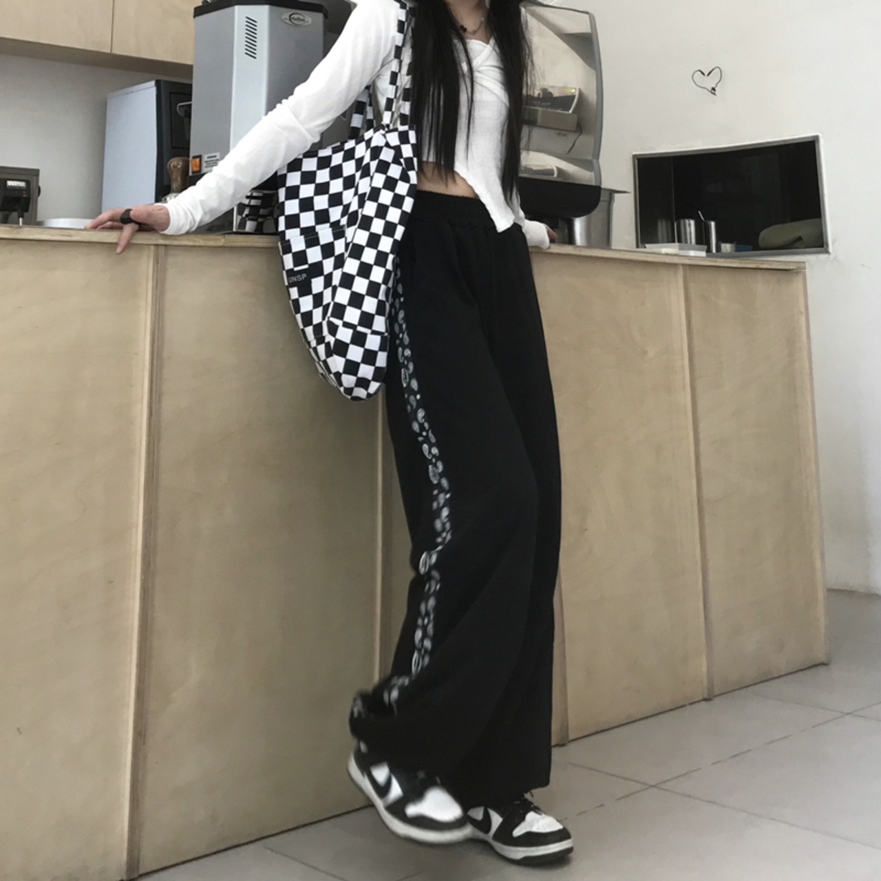 秋物韓国ファッションNEWFlowerデザイン ルーズ薄手ハイウェストウェストワイドレッグカジュアルレディース オータム ワイドパンツ フラワーデザイン ステッチ スタイル ウエスト Studios71872030009 | pLegLad Studios