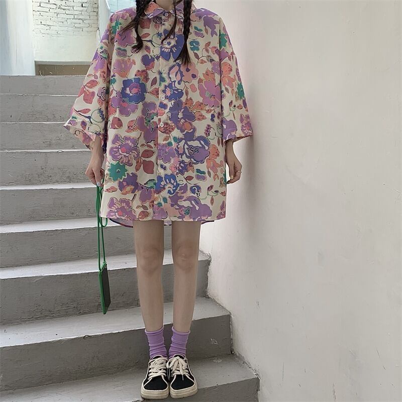 夏服韓国ファッションNEWスタイルスタンダードFlowerデザイン プリントルーズシャツ メンズレディース レトロ ストリート 原宿 夏物 フラワーデザイン Studios58535593934 | pLegLad Studios
