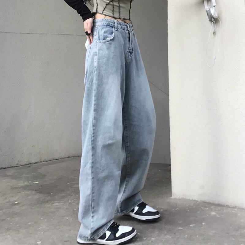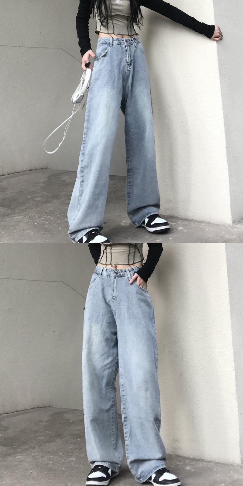 ジーンズ レディース韓国ファッションNEWスタンダードハイウェストウェストルーズ薄手ワイドレッグ レトロ ストリート ワイドパンツ スタイル ウエスト Studios44428405753 | pLegLad Studios