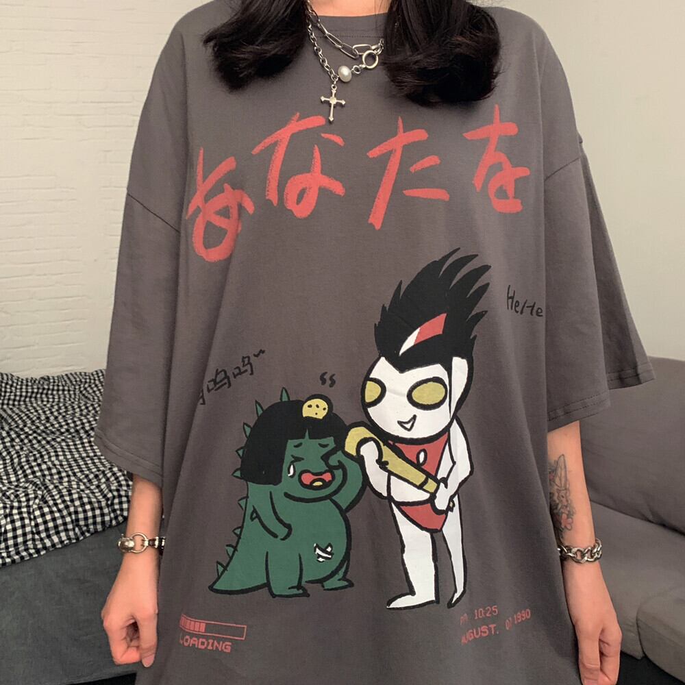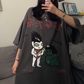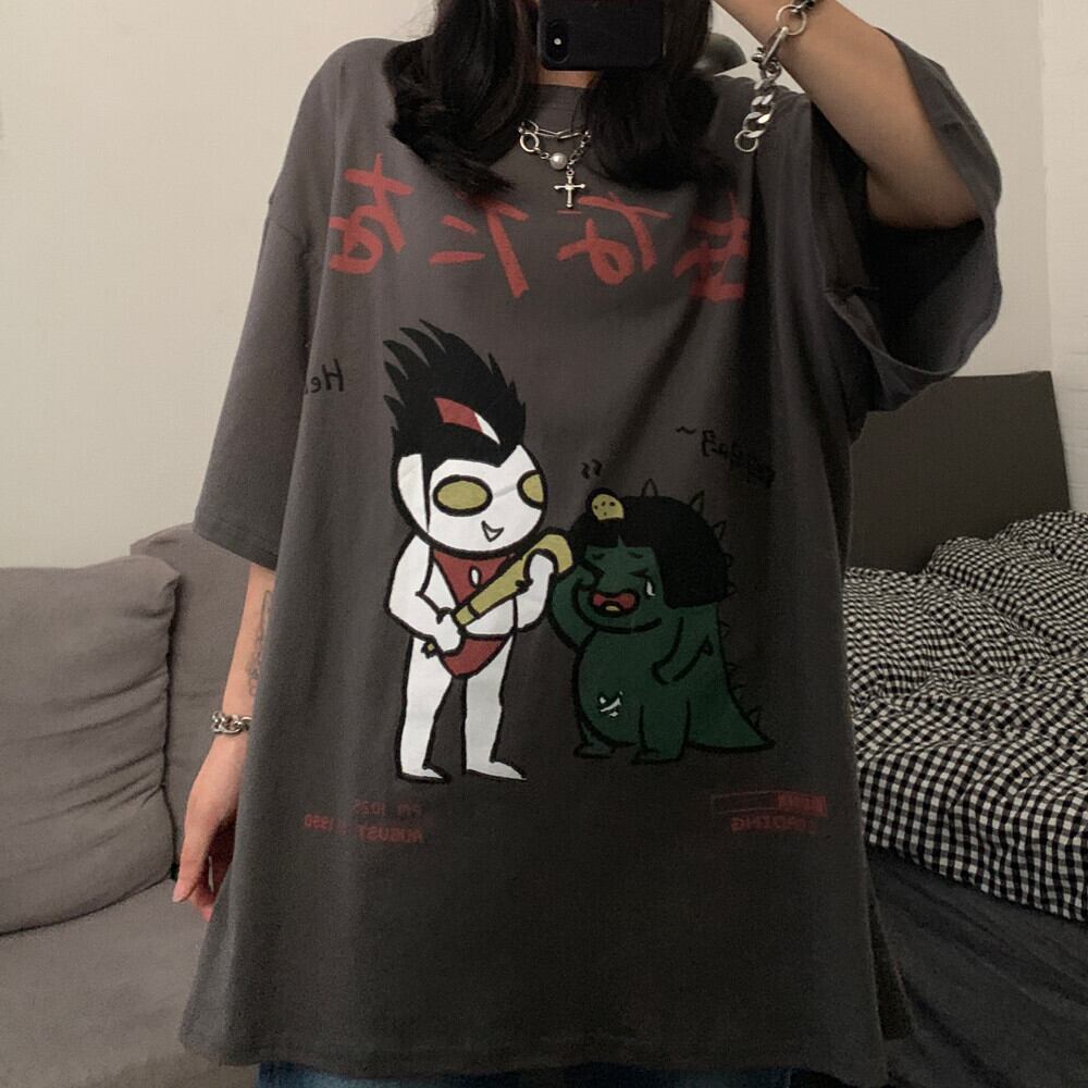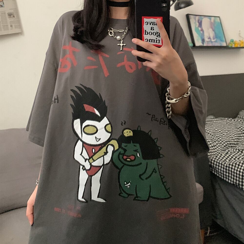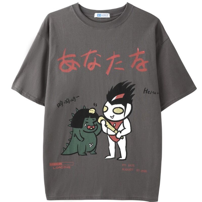 夏服韓国ファッションNEWスタイルプリント柄カジュアルルーズラウンドネックTシャツメンズレディース ストリート 原宿 夏物 Oネック Studios201981612 | pLegLad Studios