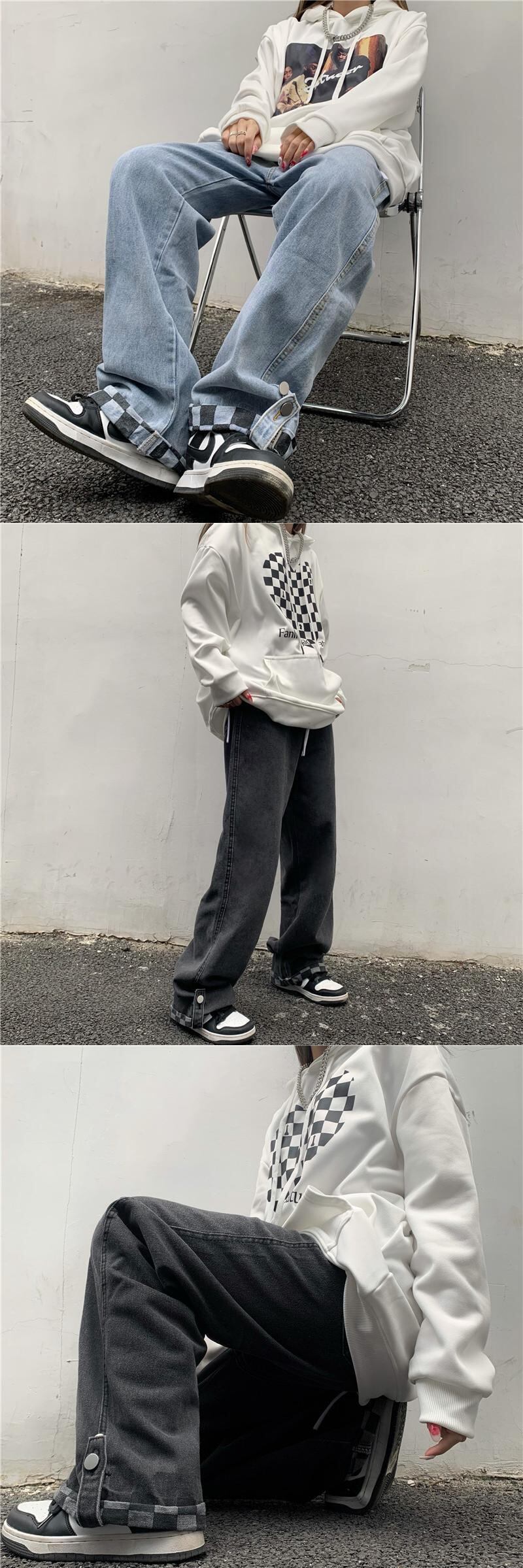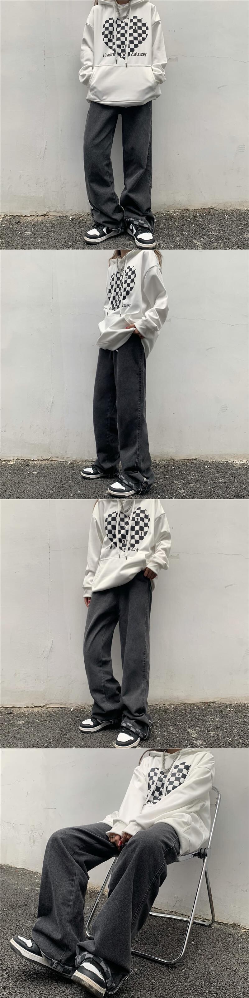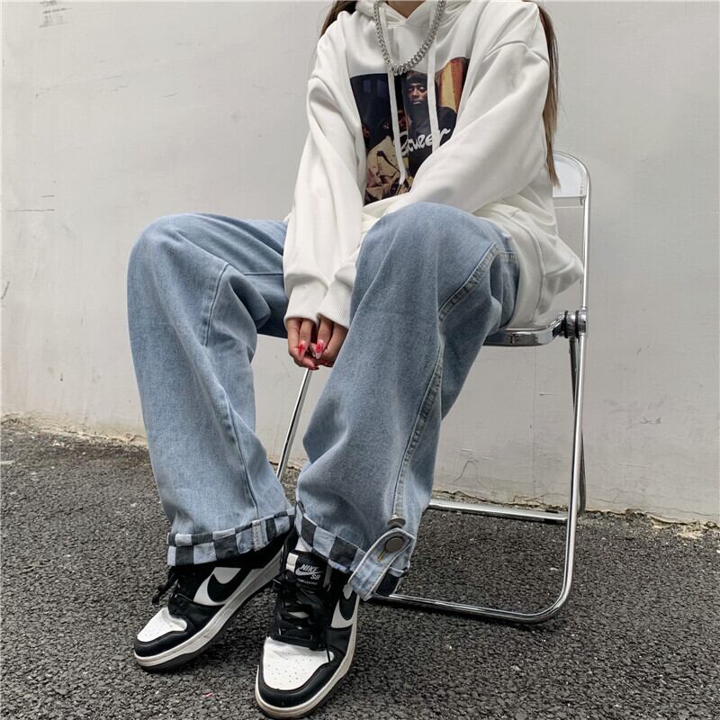 格子柄ジーンズ レディース韓国ファッションNEWスタンダードルーズ薄手ハイウェストウェストワイドレッグ レトロ ワイドパンツ ステッチ スタイル ウエスト Studios86761911390 | pLegLad Studios
