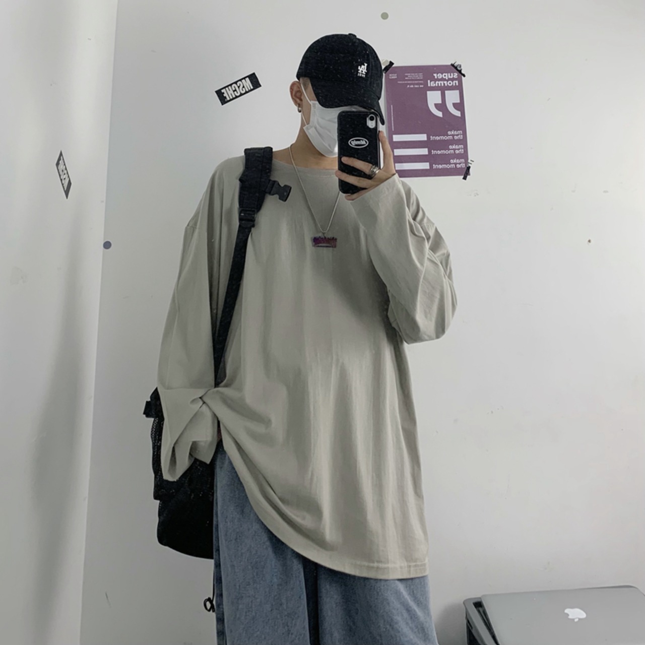 スプリング韓国ファッションNEWスタイルソリッド カラーゆったりシャツ トップス カジュアルルーズTシャツメンズレディース ロング 原宿 春物 ソリッドカラー 長袖 Studios95860790074 | pLegLad Studios