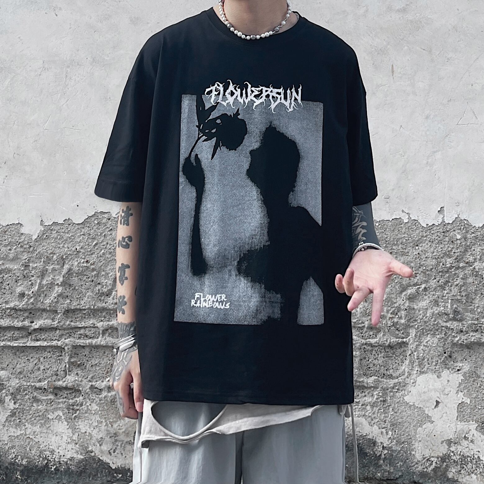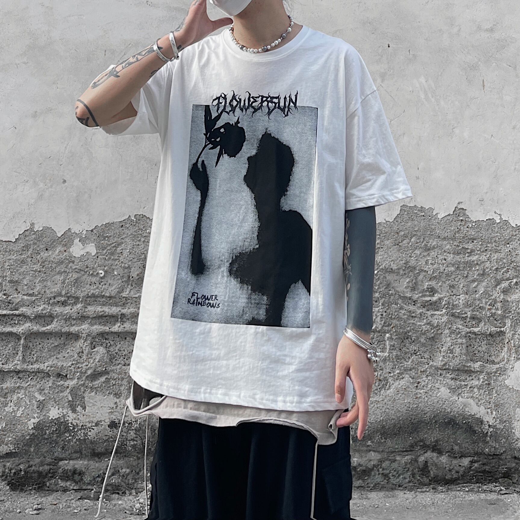 夏服韓国ファッションNEWスタイルダークプリント柄ラウンドネックルーズTシャツメンズレディース ストリート 原宿 夏物 Oネック Studios1825916093 | pLegLad Studios
