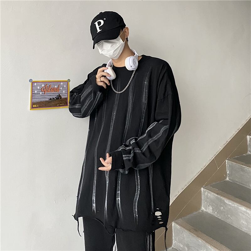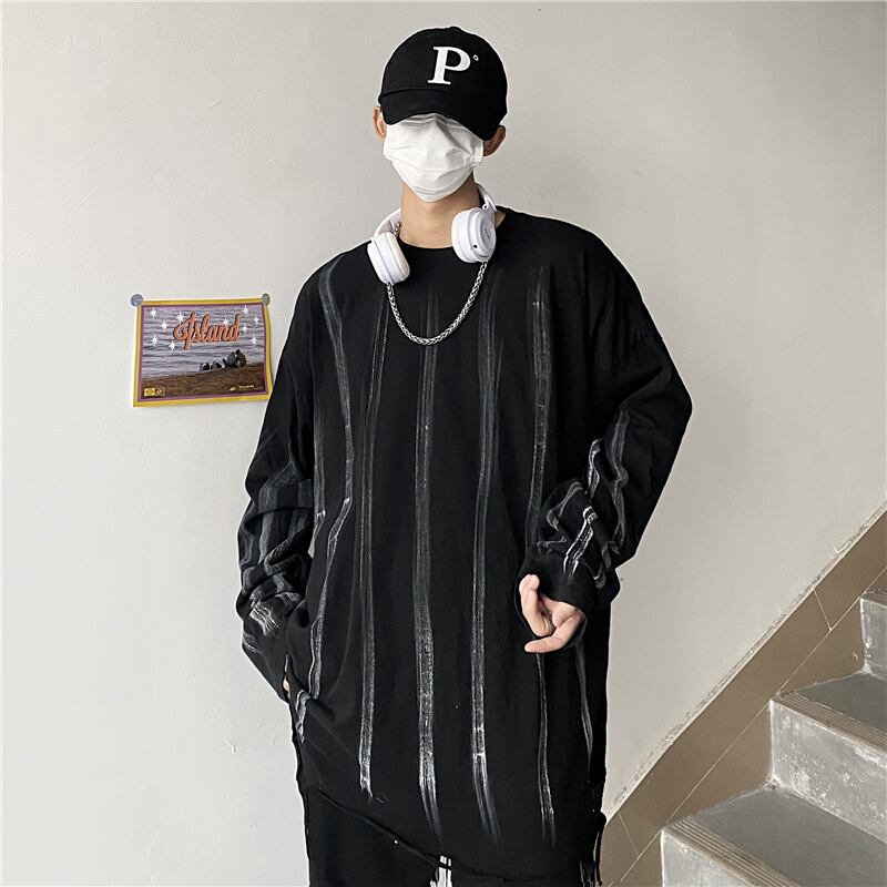 秋物ウィンター韓国ファッションNEWブラックゆったりシャツ トップス ラウンドネックスタンダードTシャツメンズレディース ロング レトロ オータム 冬物 Oネック スタイル 長袖 Studios33881096642 | pLegLad Studios