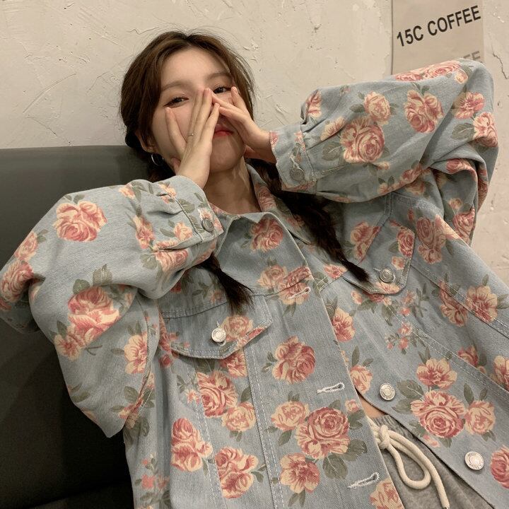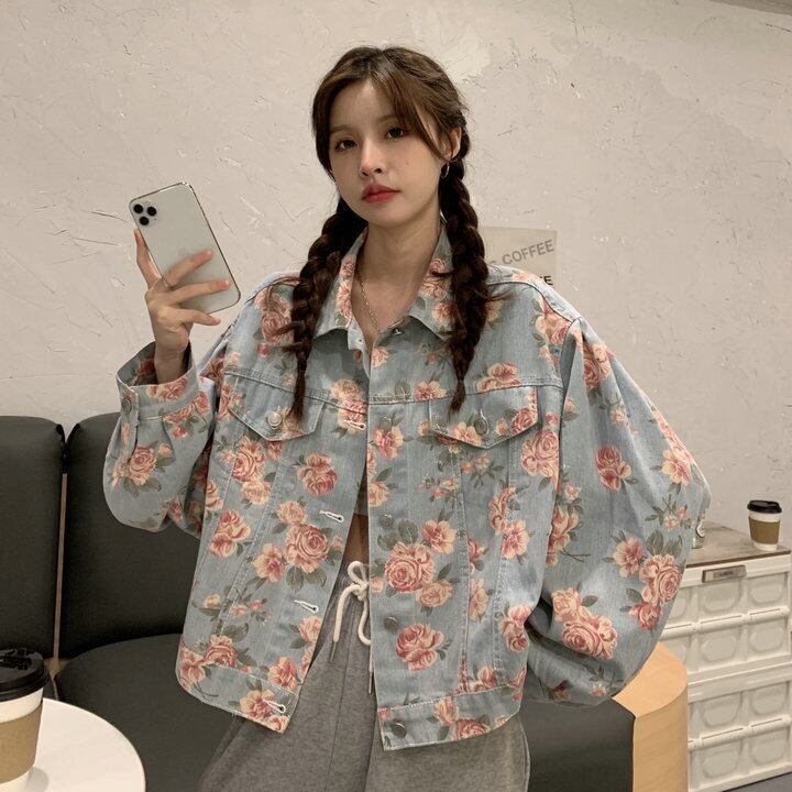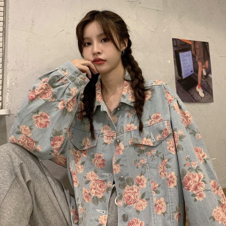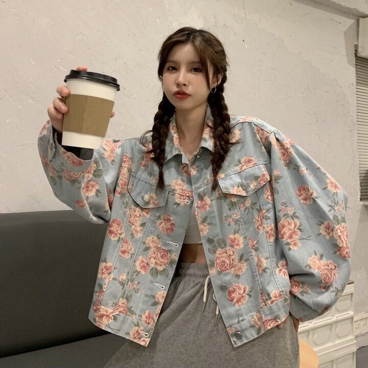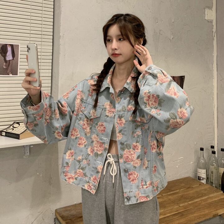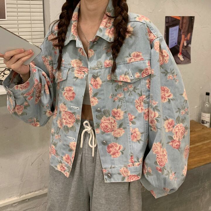 韓国ファッションNEWスタイルスタンダードルーズカジュアルショートジャケット トップス Flowerデザイン レディース レトロ フラワーデザイン Studios18312170329 | pLegLad Studios