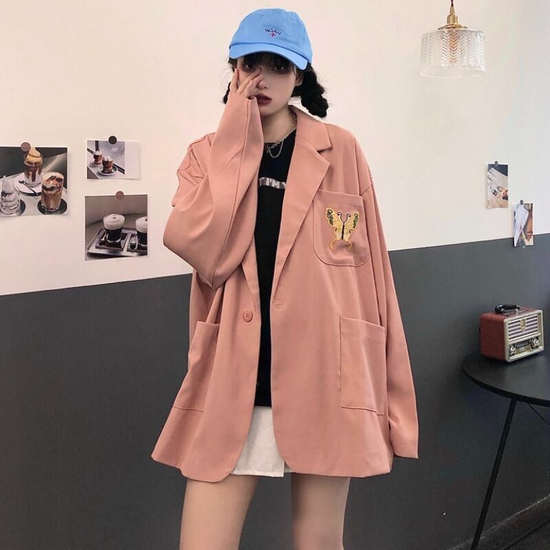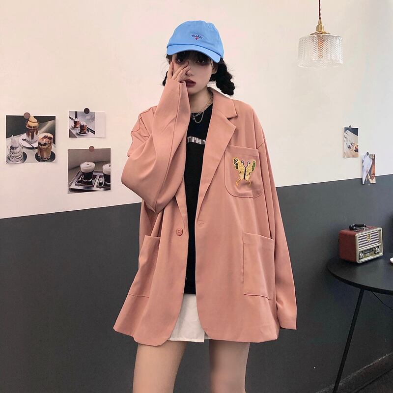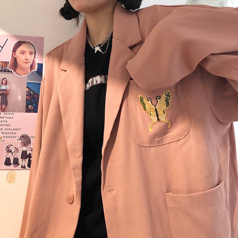 Butterflyデザイン ジャケット レディース韓国ファッションNEWスタイルスタンダードルーズ薄手カジュアル ピンク レッド レトロ 刺繍 Studios55210558033 | pLegLad Studios