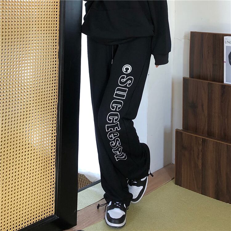 パンツ 秋物韓国ファッションNEWスタンダードプリントハイウェストウェストルーズ薄手ワイドレッグ レトロ オータム ワイドパンツ スタイル ウエスト Studios38852701644 | pLegLad Studios