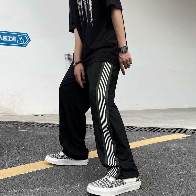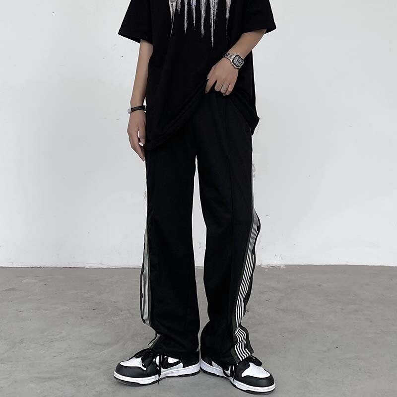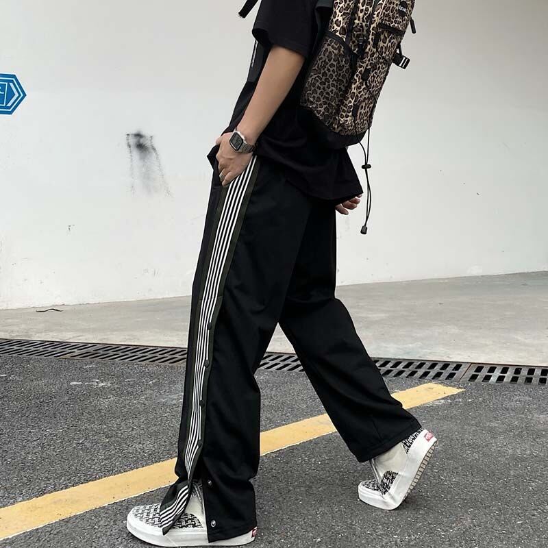 韓国ファッションNEWスタイルスタンダードルーズ薄手サイドバックルスリットカジュアルパンツ メンズレディース レトロ ストリート 原宿 Studios28712977843 | pLegLad Studios
