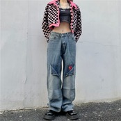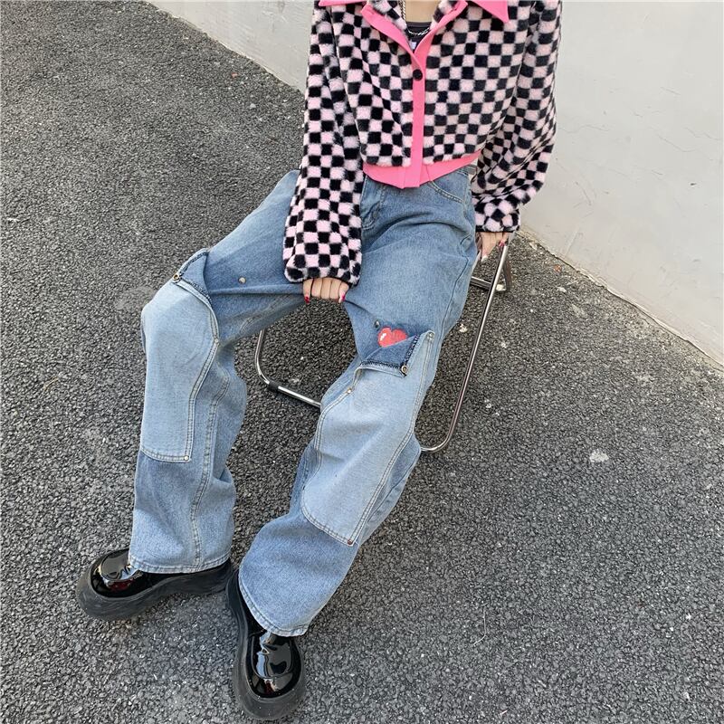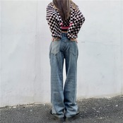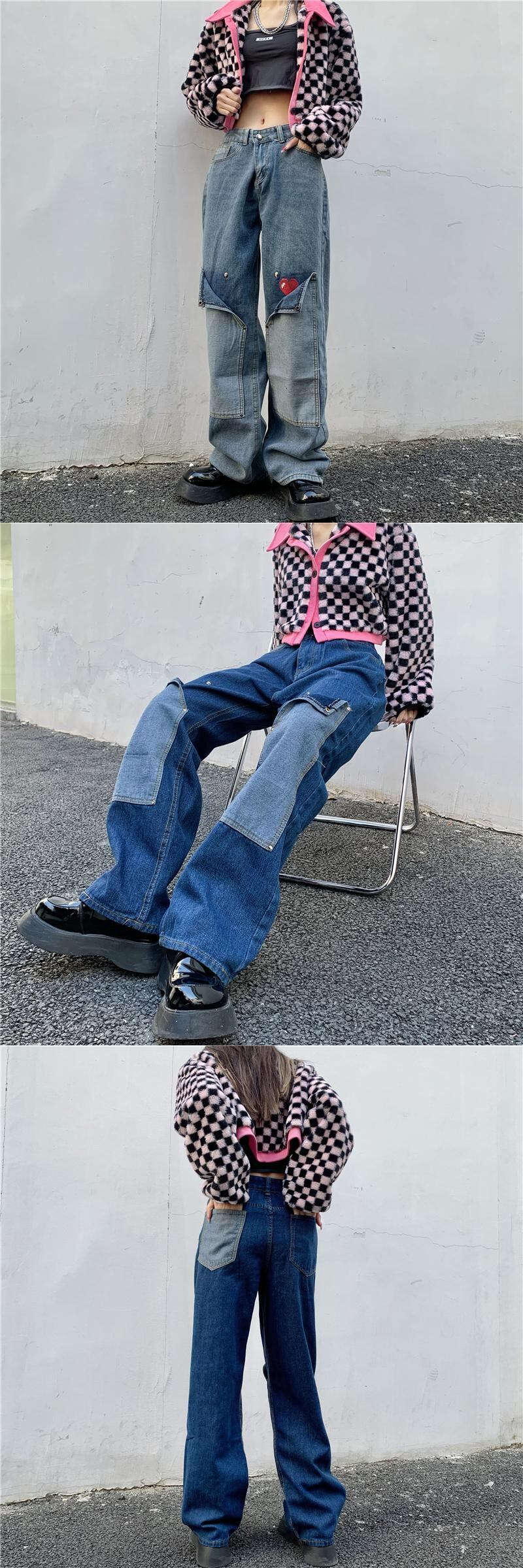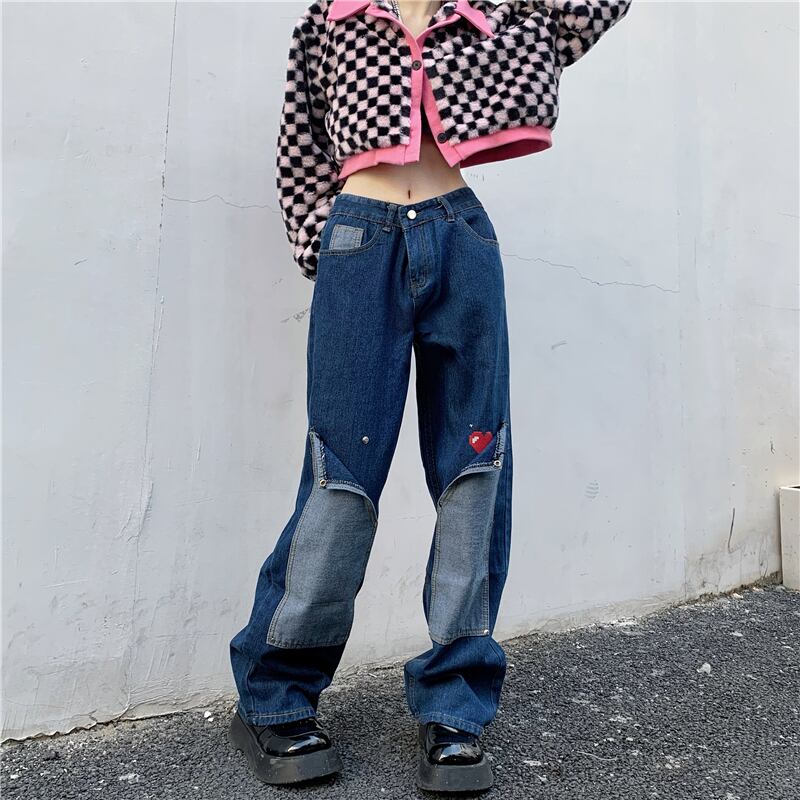 ジーンズ レディース韓国ファッションNEWルーズ薄手ハイウェストウェストワイドレッグパンツ ストリート ワイドパンツ ステッチ スタイル ウエスト Studios95973146649 | pLegLad Studios