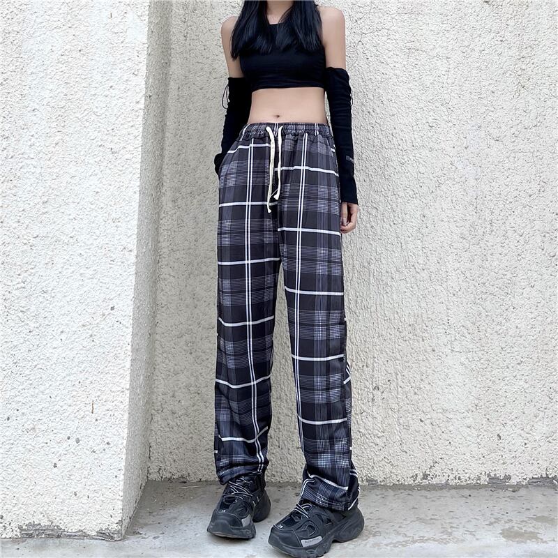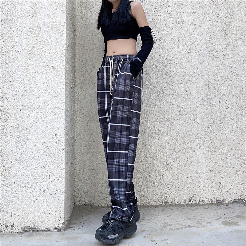 格子柄カジュアルパンツ 韓国ファッションNEWスタイルスタンダードダークヴィンテージスリムレギンス レトロ ストリート 原宿 ビンテージ Studios92605682412 | pLegLad Studios