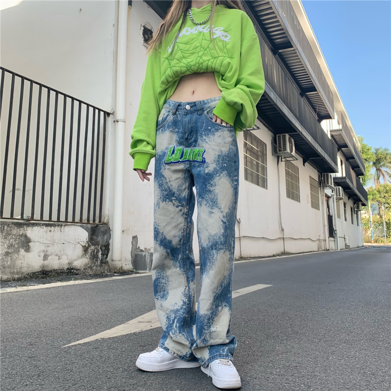 ジーンズ レディース韓国ファッションNEWルーズ薄手ハイウェストウェストワイドレッグ レッド 刺繍 ワイドパンツ スタイル ウエスト Studios3630740833 | pLegLad Studios
