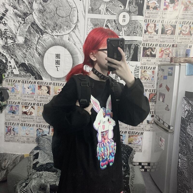 韓国ファッションNEWスタイルプリントルーズラウンドネックカジュアルTシャツレディース ロング 大人ガーリー スウィート キュート 原宿 Oネック 長袖 Studios18956155063 | pLegLad Studios