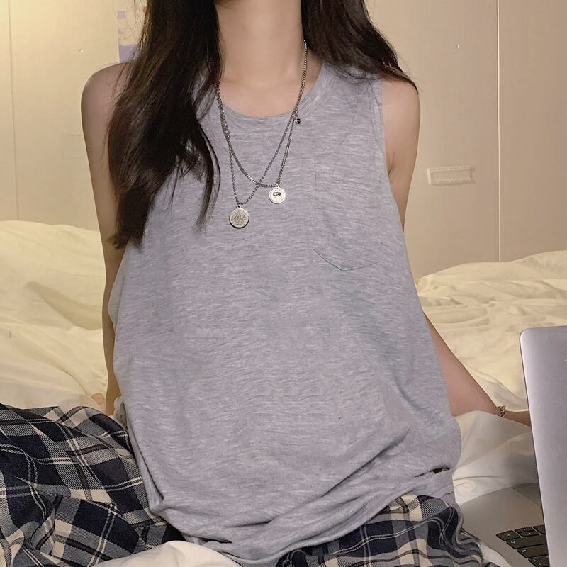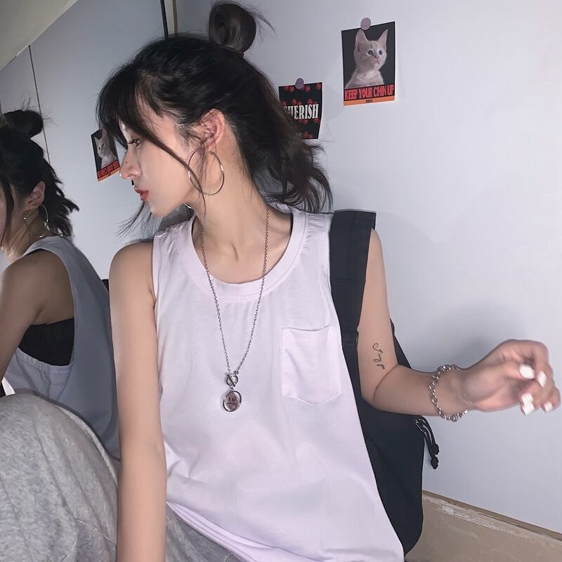 トップス レディース夏服韓国ファッションNEWスタンダード薄手ソリッド カラールーズラウンドネックノースリーブTシャツ レトロ ストリート 夏物 Oネック ソリッドカラー スタイル Studios73859211958 | pLegLad Studios