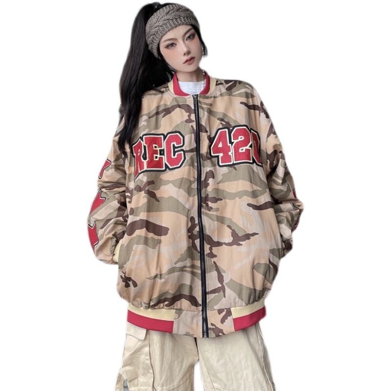 スプリング韓国ファッションNEWスタイルスタンダードルーズカジュアル迷彩柄ジャケット メンズレディース レッド レトロ ストリート 刺繍 原宿 春物 Studios22722729021 | pLegLad Studios