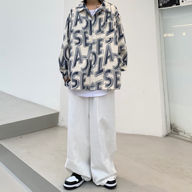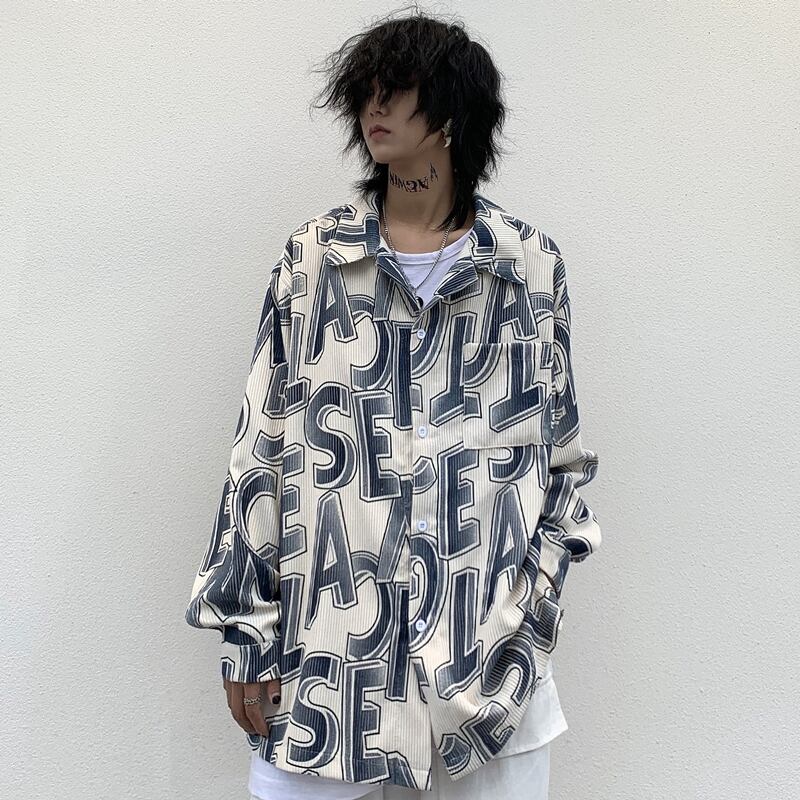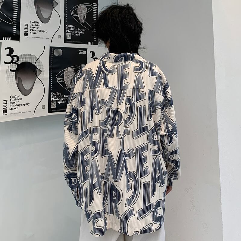 スプリング韓国ファッションNEWスタイルスタンダードプリントカジュアルルーズコーデュロイシャツ メンズレディース ロング レトロ 春物 長袖 Studios47265897279 | pLegLad Studios
