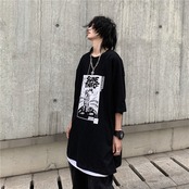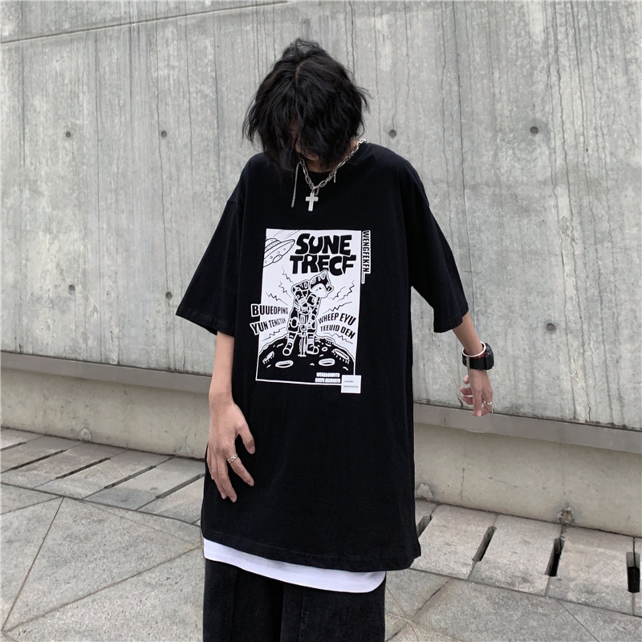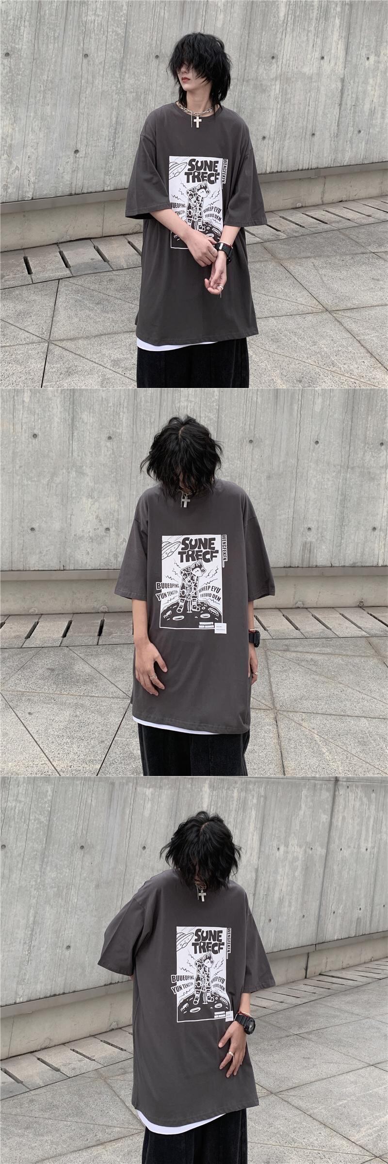夏服韓国ファッションNEWプリントカジュアルラウンドネックルーズTシャツメンズレディース ストリート 夏物 Oネック スタイル Studios18283551570 | pLegLad Studios