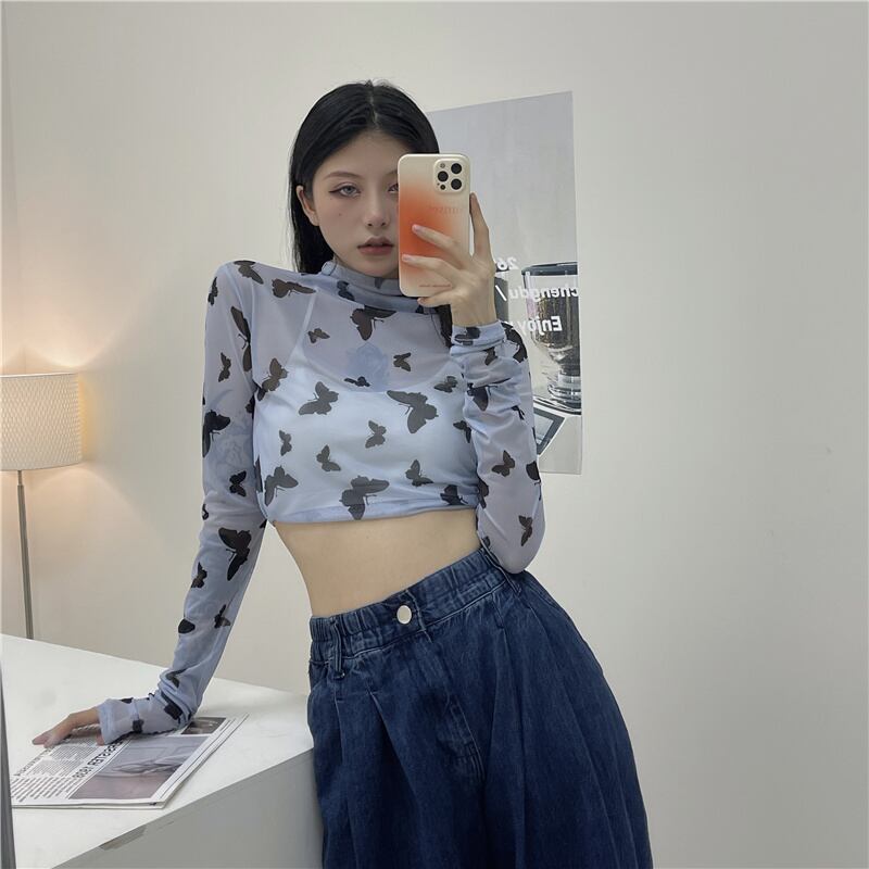 ゆったりシャツ トップス レディース秋物韓国ファッションNEWButterflyデザイン 薄手スリムフィットTシャツ ロング オータム シルク スタイル 長袖 Studios72093480469 | pLegLad Studios