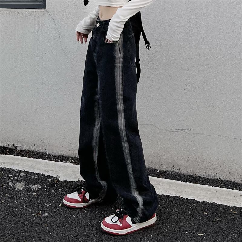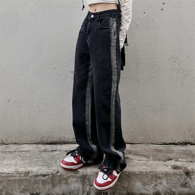 ブラックジーンズ レディース韓国ファッションNEWスタンダードハイウェストウェスト薄手ルーズワイドレッグパンツ レトロ ストリート ワイドパンツ スタイル ウエスト Studios84719217949 | pLegLad Studios