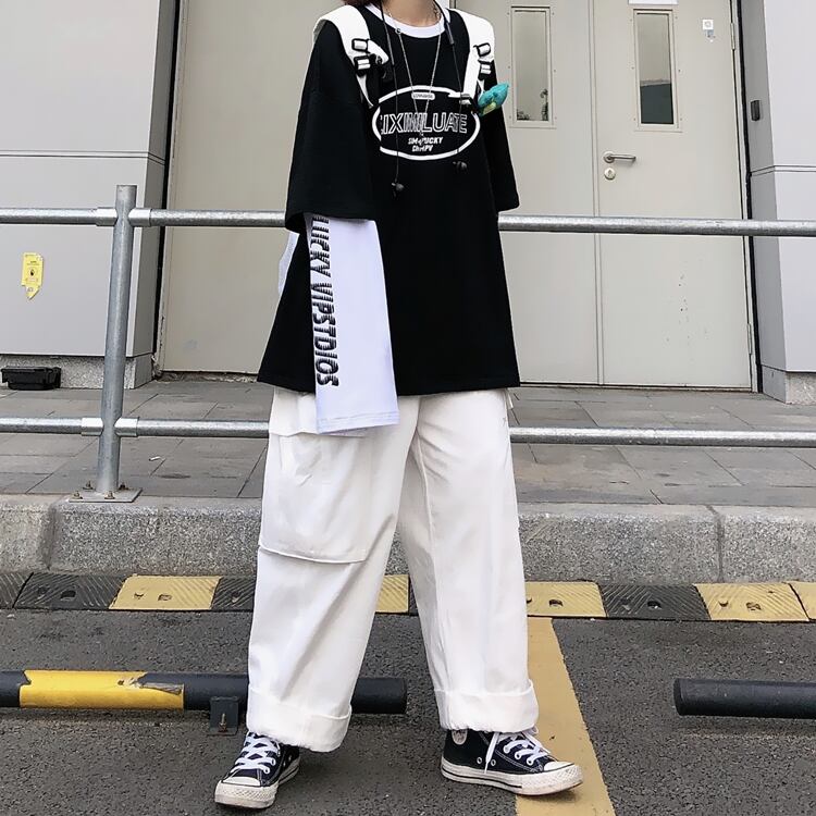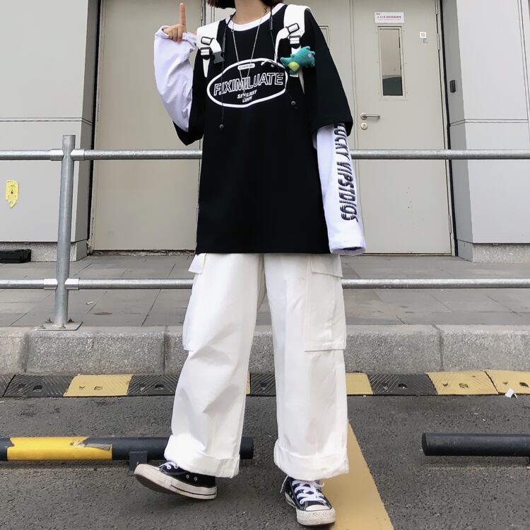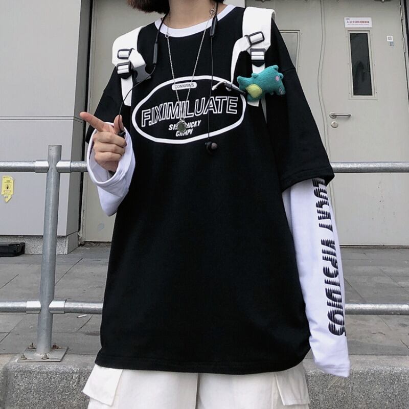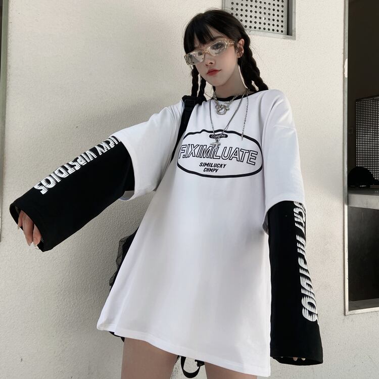 スプリング夏服韓国ファッションNEWスタイルプリントルーズラウンドネックTシャツメンズレディース ロング ストリート 原宿 春物 夏物 Oネック ステッチ 長袖 Studios36669852497 | pLegLad Studios