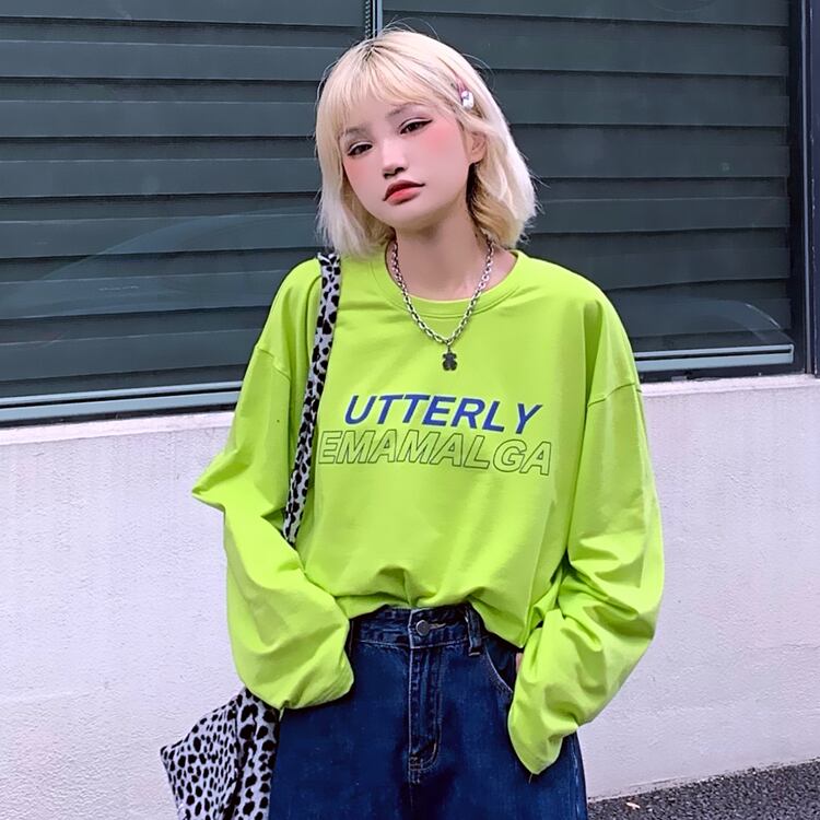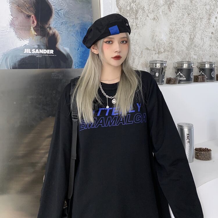 ゆったりシャツ トップス 秋物韓国ファッションNEWプリントカジュアルルーズラウンドネックTシャツ ロング オータム Oネック スタイル 長袖 Studios15250125392 | pLegLad Studios