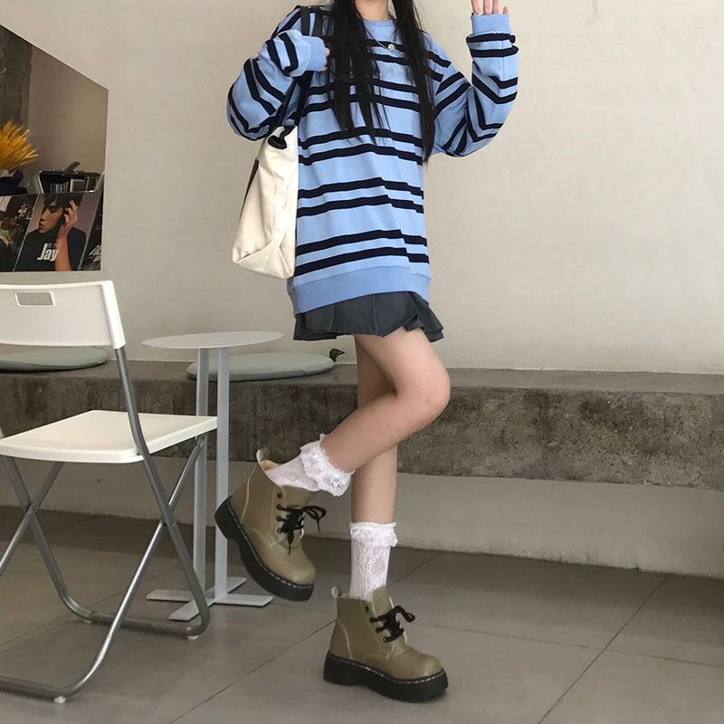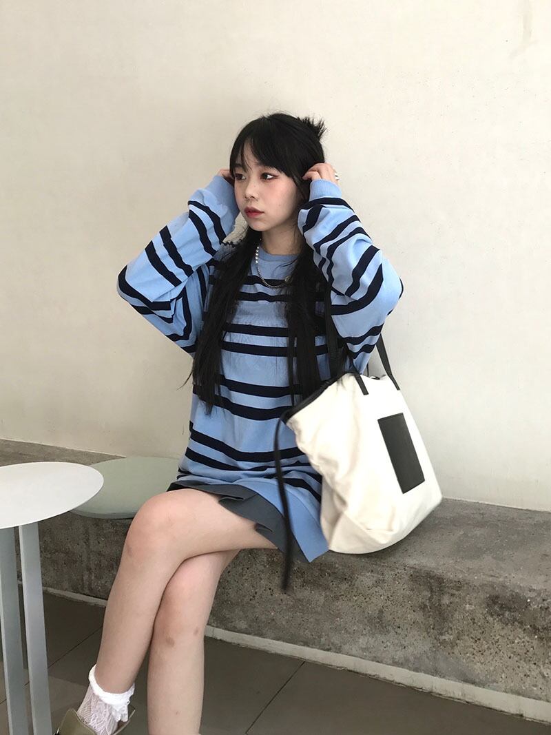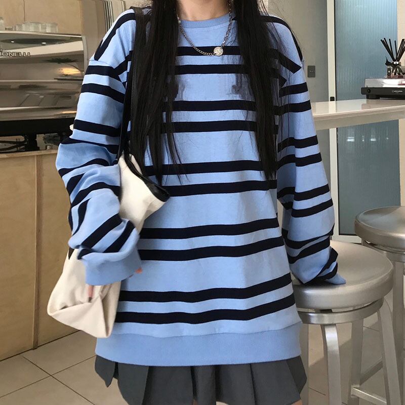 秋物韓国ファッションNEWスタイルスタンダードカラーストライプラウンドネックルーズカジュアルセーター レディース ロング レトロ ストリート 原宿 オータム Oネック 長袖 Studios21585731251 | pLegLad Studios