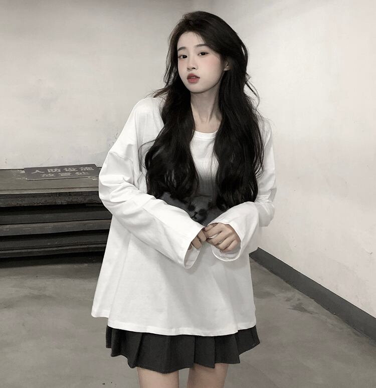 ゆったりシャツ トップス レディース秋物韓国ファッションNEWダークプリント柄ルーズカジュアルTシャツ ロング オータム スタイル 長袖 Studios68687711189 | pLegLad Studios